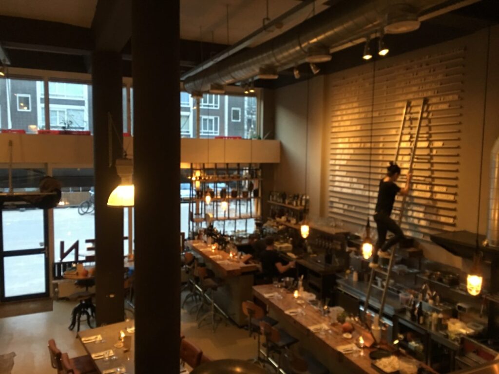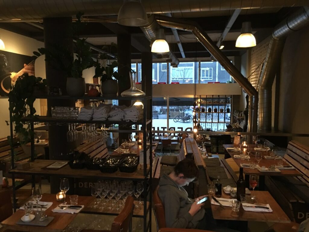Afgelopen vrijdagavond heb ik met Zoon Django gegeten in Restaurant 13 op een steenworp afstand van de zinderende Witte de Withstraat, dowtown Centrum Roterrrrdam. Wat een lekkere tent zeg, gezellig ruw industrieel. Hoog en luchtig met een knaller van een houtoven waar het merendeel van de gerechten in wordt bereid. Top personeel, alert en domweg gewoon aardig. Het eten was heerlijk en de drank die er geschonken werd uitstekend. Vette aanrader dus.