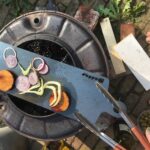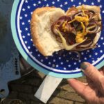 De gehacktbal de van de vegetarisch Slager door de midden snijden , paar flinters venkel en rode ui .paar minuutjes op de Fireplate , snij ondertussen lekker peperige radijs in stukken en een sesam bolletje in twee . Schep het hele zootje nu tussen het broodje schenk er royal wat mostersauce over heen.