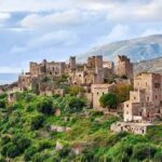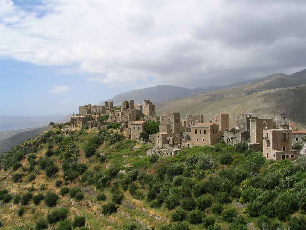 - Monemvasia, een middeleeuwse Griekse vestingstad op een hoge rots, met als bijnaam het Griekse Gibraltar.
