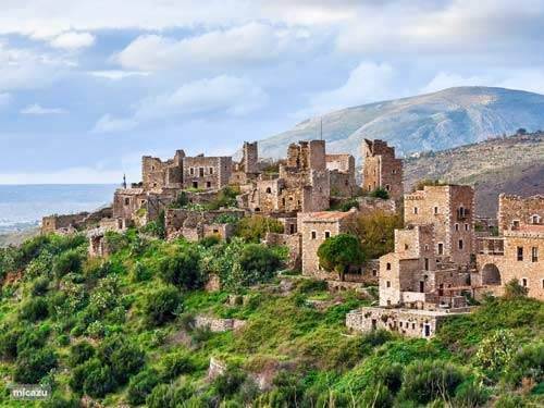 - Mystras of het Wonder van Morea, een byzantijnse ruïnestad of spookstad op korte afstand van Sparta.