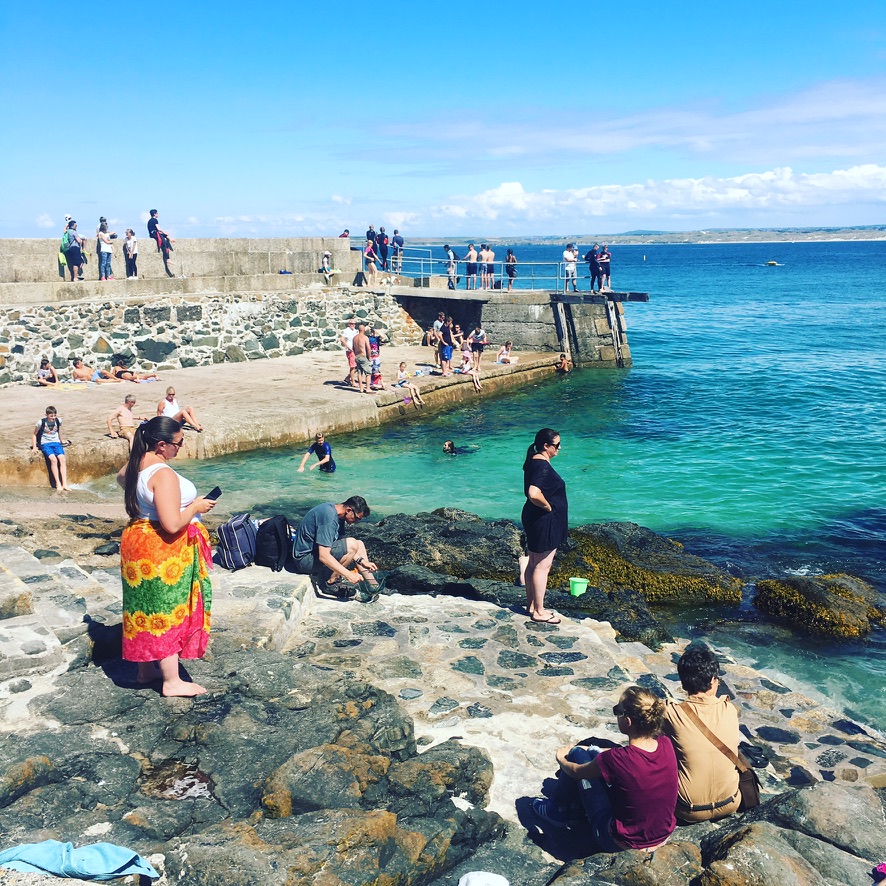 Sint Ives / voordat ik het vergeet /parkeren is super lastig met een grote camper in strandstadjes / in Sint Ives parkeer je bij het plaatselijke rugby team voor 5 pond per dag ,een bus brengt je voor een pond naar het strand . Lol.