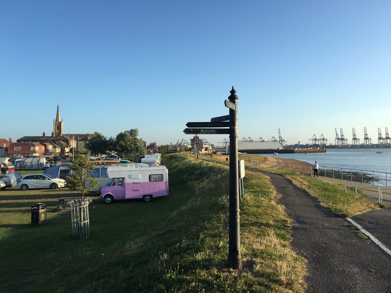 overnachten in Harwich als je smorgens de boot naar Nederland moet hebben, wij zijn mazzelkonten en mochten naast de Harwich zeilclub staan die een keer per jaar toestemming krijgen om in het parkje te kamperen naast de zeilclub. Op andere dagen slaap je op een parkeerplek naast het parkje , het eten in pub The Alma Inn op 5 minuten lopen van het parkje is heerlijk , de weg naar de pub vraag je aan een Engelsman . De ferry vergt slechts 10 minuten rijden .