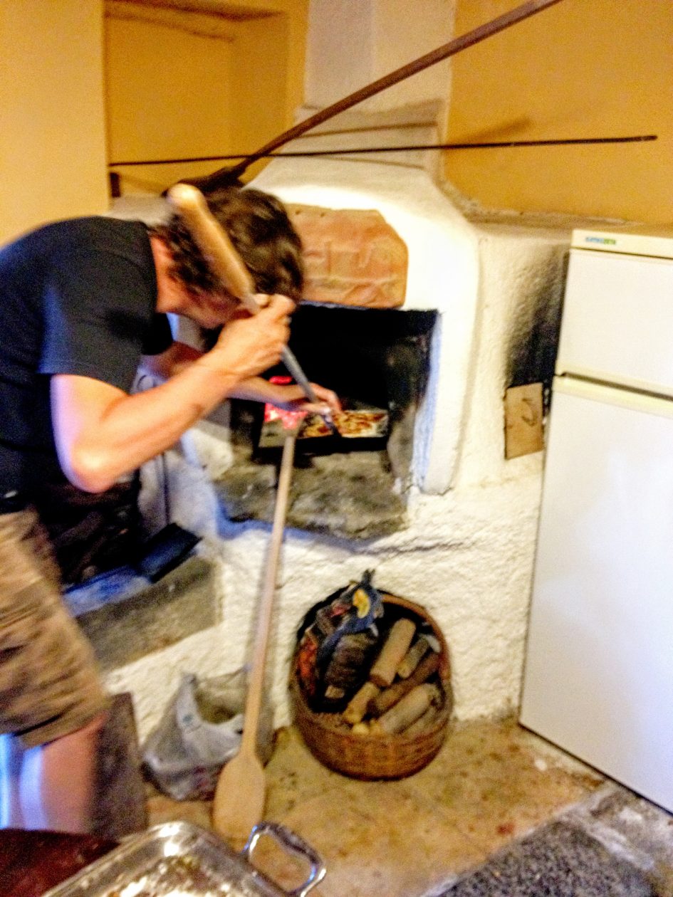 Nou klinkt ‘landgoed’ heel afgelikt en niet zo tof maar dit is Sicieeeeliieeee. Dus is het huis zo ruig en zo rafelig als een Italiaans huis maar kan zijn, zijn de bomen er om uit te plukken, kan je in ieder oud blik, bak en bbq fik stoken en oh omdat de benedenruimte toch maar een loze ruimte is mogen jullie die er best bij gebruiken hoor. ‘Si. No problemo’. Dus sleepten wij op de wat frissere meiavonden banken en tafels naar die grote ruige ruimte, stookten daar het vuur goed op, openden nog eens een fles en wachtten tot het pizzadeeg gerezen was.
