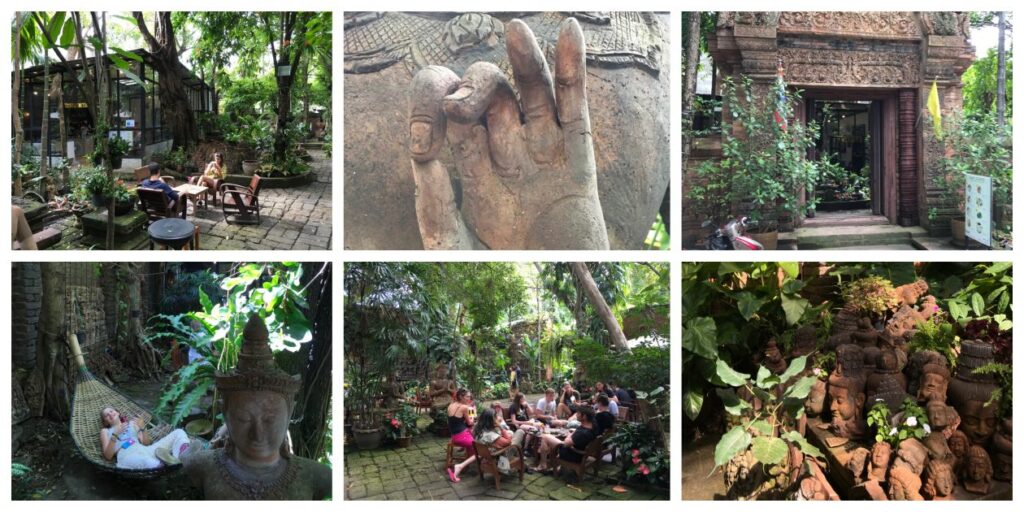Chiangmai is een feest . De oude stad is een doolhof van stegen en kruispunten vol met eetstalletjes , massage salons , groente en kruiden markten . In toffe backpackers hostels hangen jonge hippies met met minimaal een wrede tribal tattoo sleeve. de komende dagen is Corame de schoonvader van zus Janneke , die woont en werkt in Chiangmai onze gids. We knetteren op onze huur scooters in een rap tempo achter hem aan. Er zijn hier verkeersregels maar iedereen interpreteert die op zijn eigen leuke Thaise wijze. De kids gillen van plezier , harder, harders . Ik vind het hard zat , ze rijden hier links en daarnaast is het recht van de grootste / sterkste hier van toepassing. s’ochtends en s’avonds koelt het hier in het noorden lekker af , maar s’middags is het nog steeds tropische warm. We zoeken verkoeling in de Clay Garden . Toffe plek met veel schaduw en een kruising tussen een overwoekerde tempel en een museum .