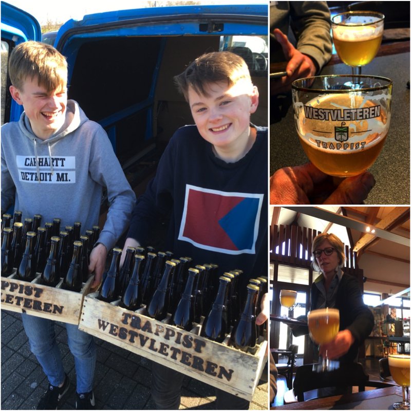 Vanmorgen heel vroeg op en richting Frans/ Belgische grens gereden . Westvleteren trappisten bier volgens sommige het beste bier ter wereld is het doel . Even terug naar vorige week . Na een half uur non stop bellen op een door de monniken aangegeven tijdstip kom ik er door . Nadat ze je kenteken gecheckt hebben ( je mag twee kratten bier per twee maanden op een kenteken kopen ) krijg je een datum en tijd door dat je verwacht word . Een uur voordat we verwacht worden rijden we tegen de kloostermuur . In het nabijgelegen cafe drinken/proven we alvast van een glas Westvleteren blond. Lekker ! is het unanieme oordeel . We sluiten aan bij de mini file voor het klooster en na 10 minuten is het onze beurt . België is tof . We hebben twee houten kratten met abdij bier achter in de bus .