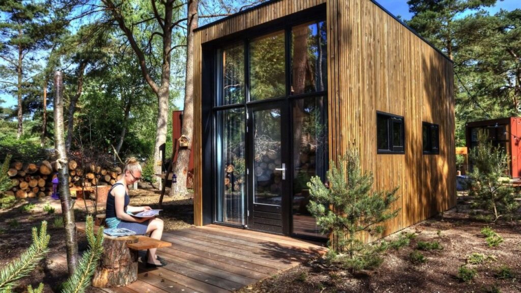 Man wat ziet dit Tinyhuisje er tof uit . Kleine wonen word ineens ……Enorm leuk …… immens sfeervol……….. kolossaal romantisch ………. onmetelijk fijn. Je kan ze kopen en huren bij Droomparken . Zo,n Tinyhouse huren is gegarandeerd chillen ,uitermate relaxt en ook nog eens lekker dichtbij . Hij staat prachtig midden in de natuur Klappers van bomen eromheen zorgen voor een super mooi fijn versnipperd zonlicht .