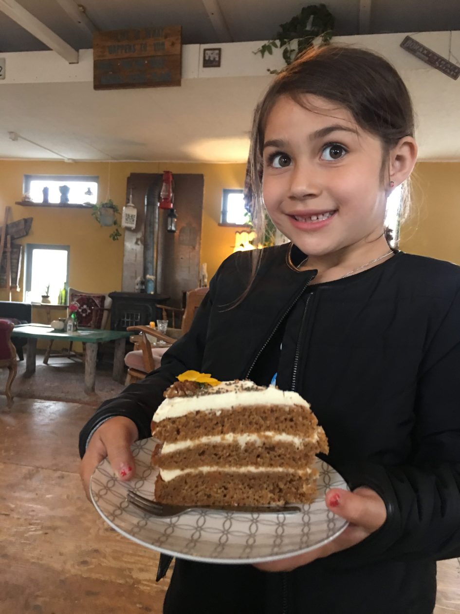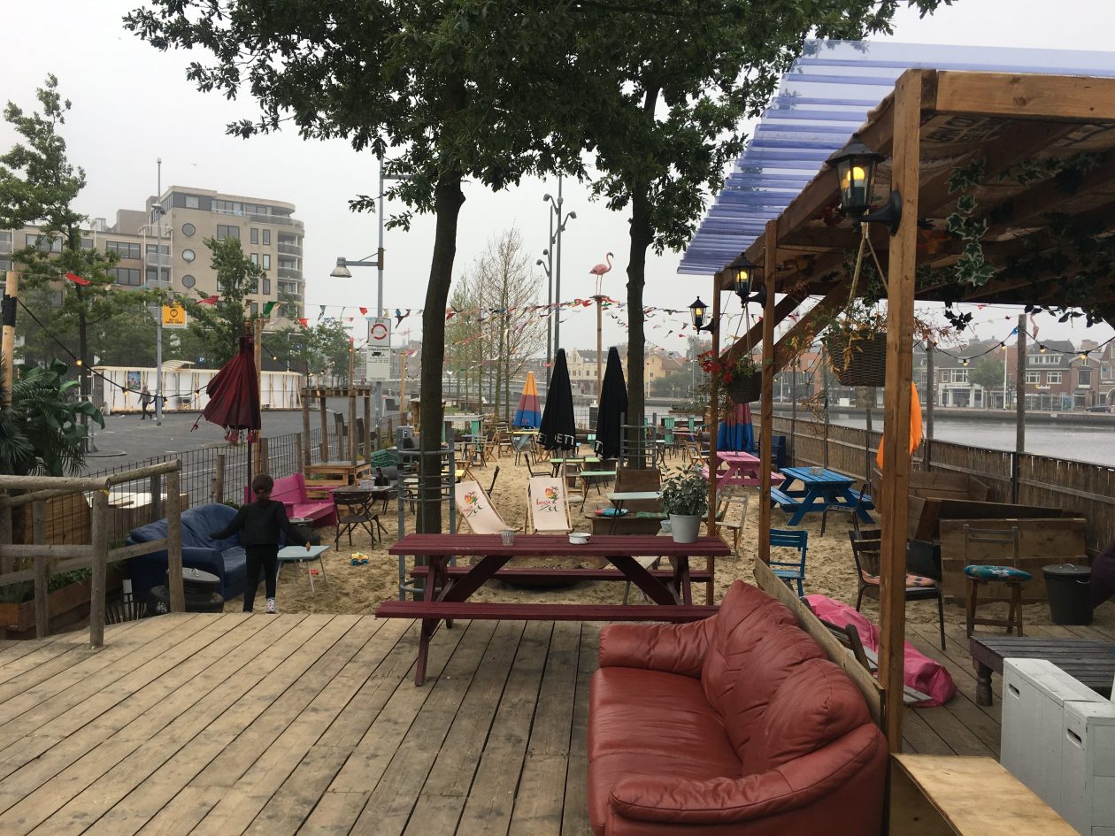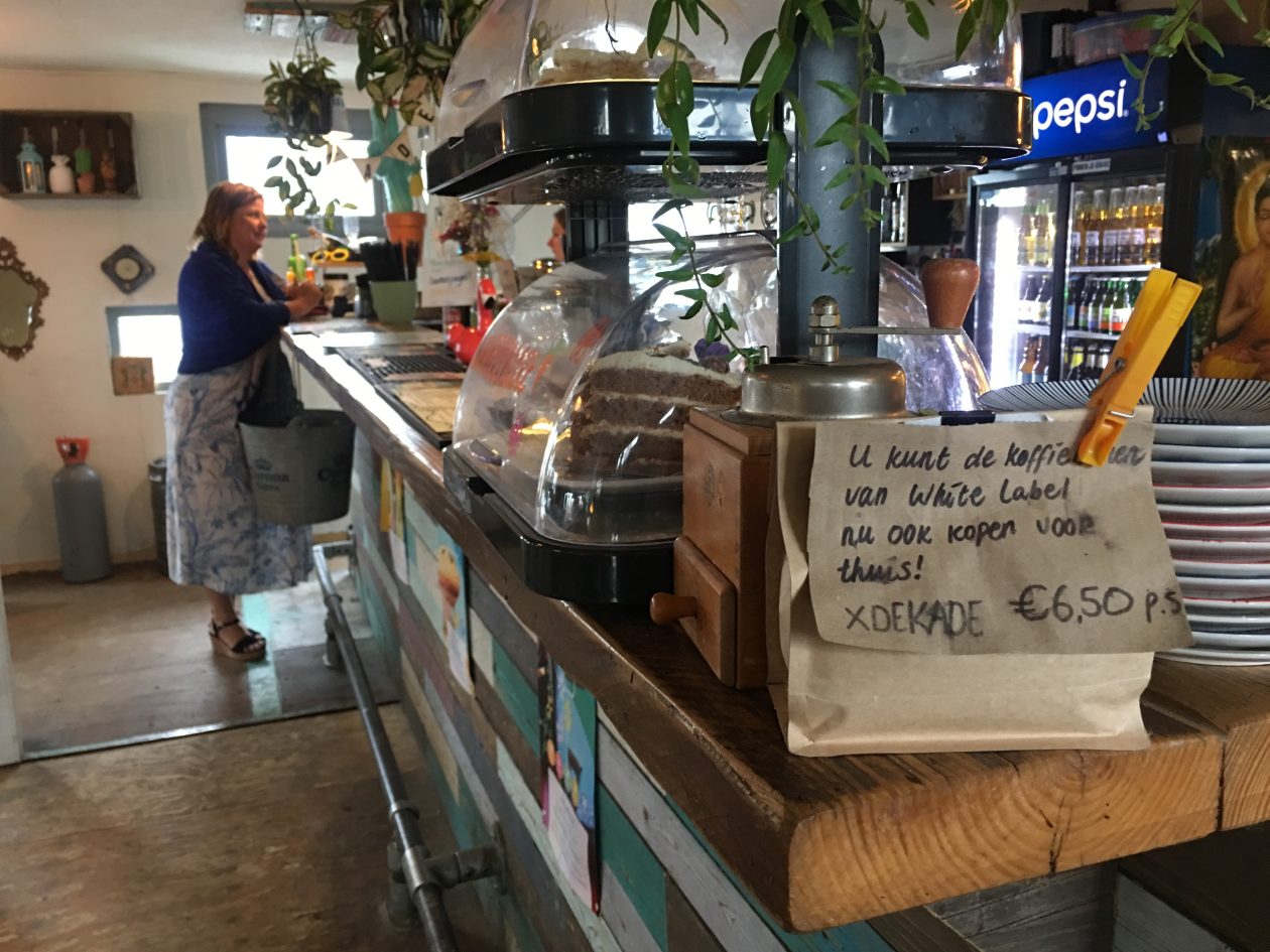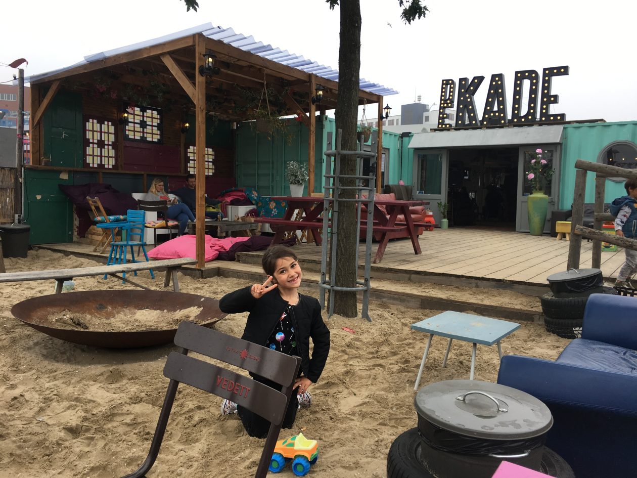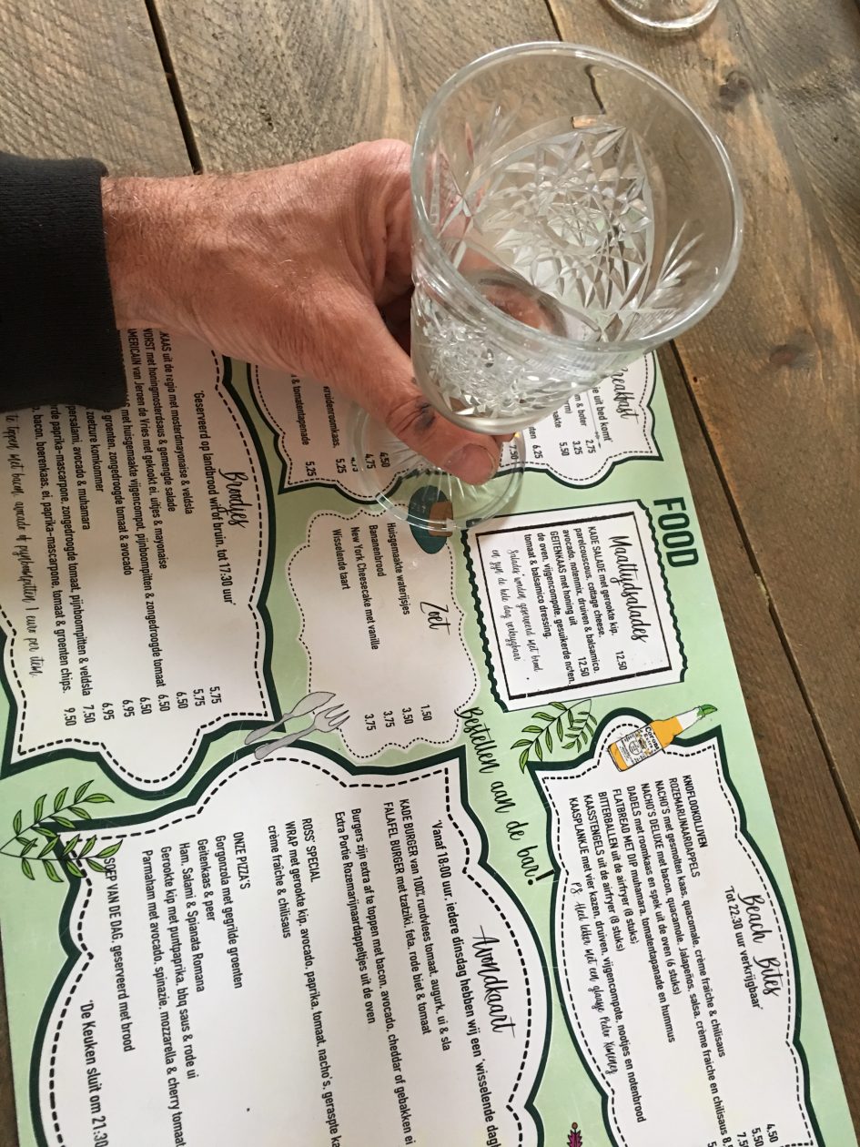 Wes Andersons nieuwste film “Isle of the dogs” draait in het Filmhuis Alkmaar . Net als “Fantastic Mr. Fox” een stopmotion film . Super mooi gemaakt . Tof verhaal . Ik vertel verders niets . Ga kijk . Hij is fantastic . Het is heiig weer als we het theater verlaten en Trek&Dorst brengt ons naar Stadsstrand de Kade . Het weer zorgt ervoor dat we moeiteloos aan een tafel binnen kunnen aanschuiven . Op de tv op onze tafel draait een aquarium film . Kijk ook even “The Life Aquatic with Steve Zissou “ van Wes Anderson . Hilarisch . Nichtje Uma heeft lak aan het weer en sprint meteen naar buiten om de te klooien in het stadsstrand . Binnen golft er fijne muziek uit de speakers en worden de glazen vol geschonken . Prima sfeer ,gezellige bediening en het voelt als thuis . Na een tafel vol warps en salades gaat er bij Uma nog een complete worteltaart naar binnen .Wij mogen ook proeven . Top . Morgen gaan we er zelf een bakken . Alkmaar is tof.