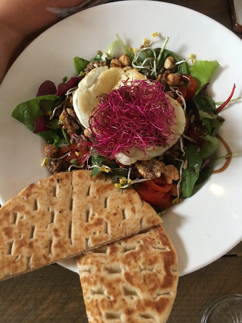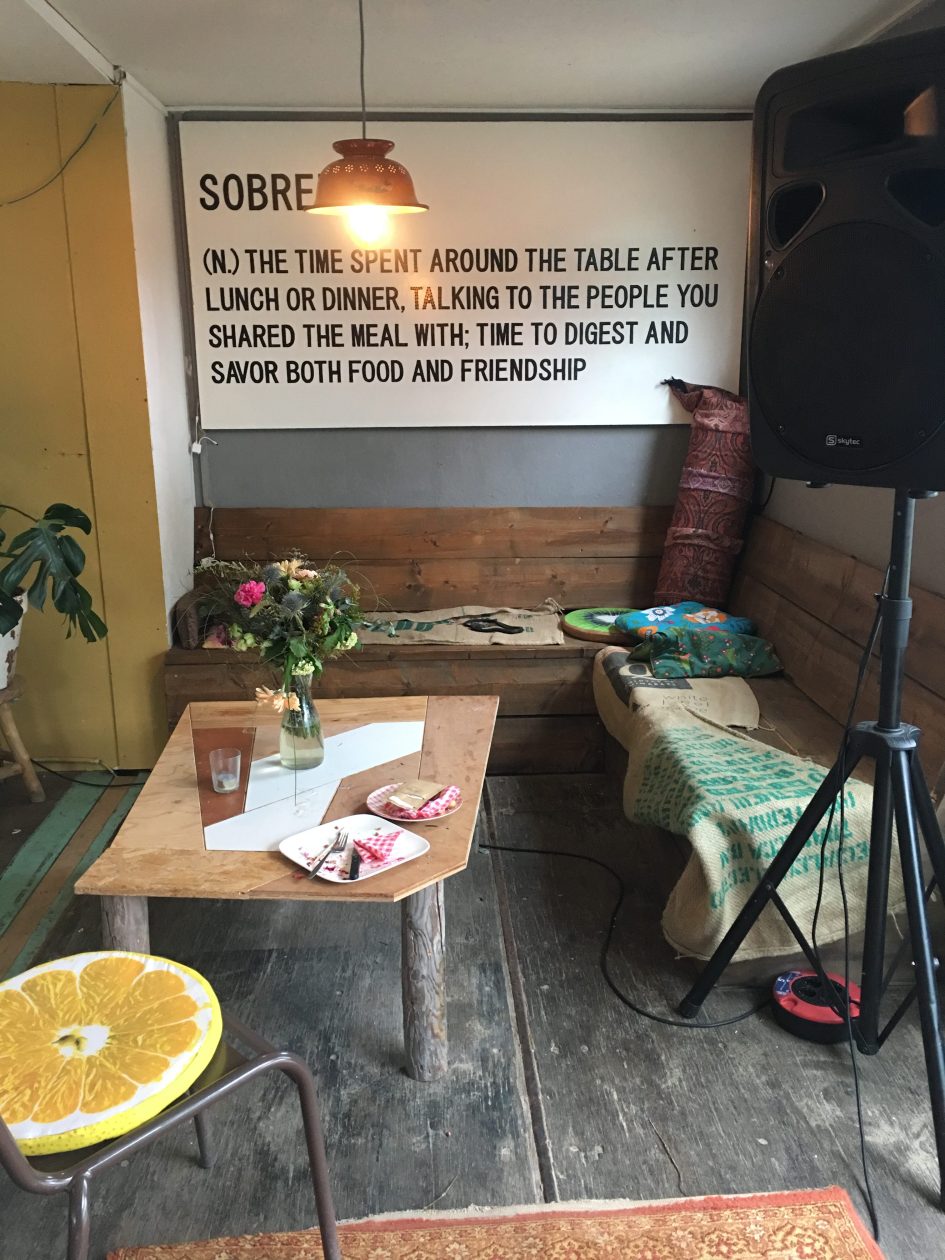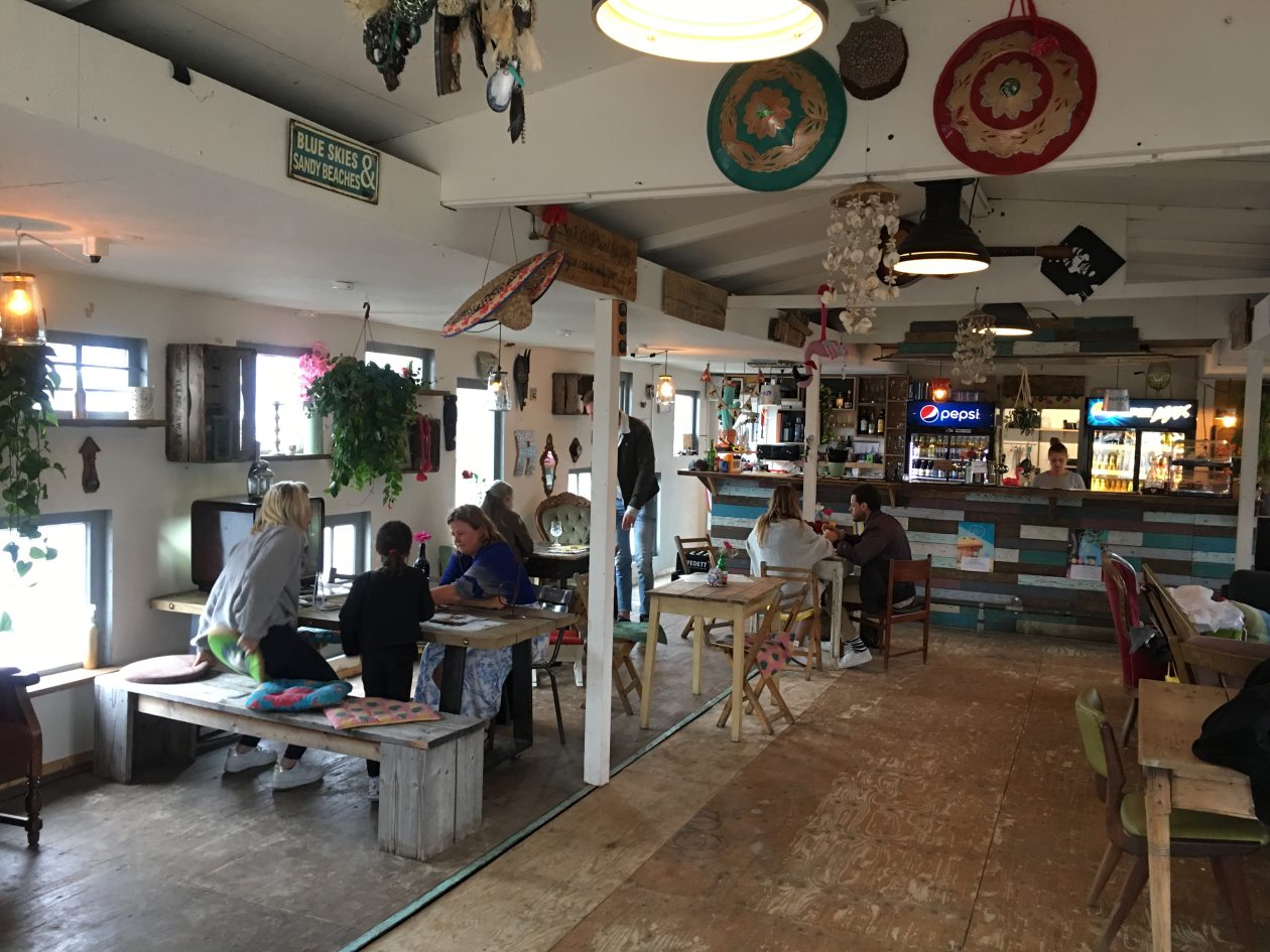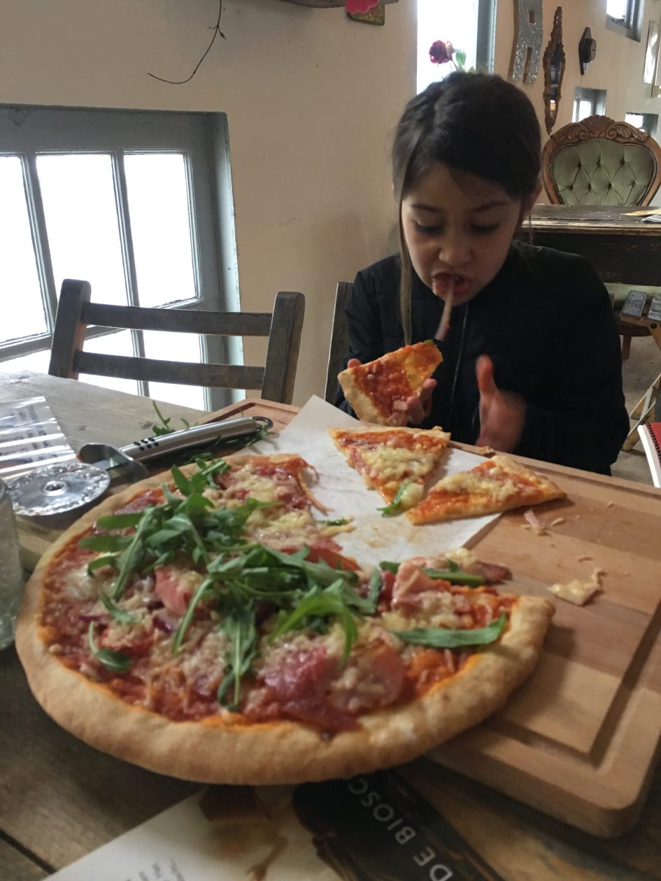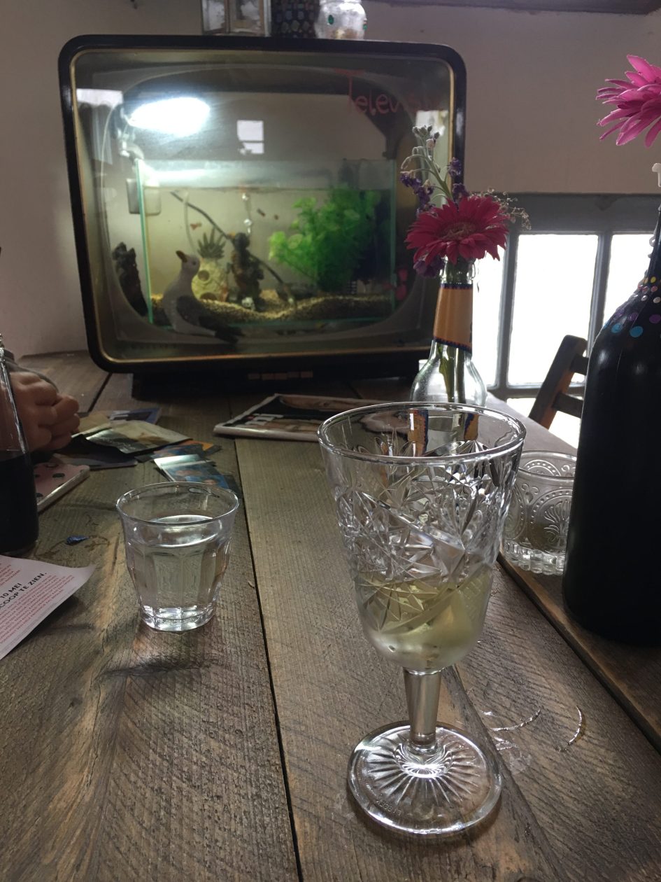 Wes Andersons nieuwste film “Isle of the dogs” draait in het Filmhuis Alkmaar . Net als “Fantastic Mr. Fox” een stopmotion film . Super mooi gemaakt . Tof verhaal . Ik vertel verders niets . Ga kijk . Hij is fantastic . Het is heiig weer als we het theater verlaten en Trek&Dorst brengt ons naar Stadsstrand de Kade . Het weer zorgt ervoor dat we moeiteloos aan een tafel binnen kunnen aanschuiven . Op de tv op onze tafel draait een aquarium film . Kijk ook even “The Life Aquatic with Steve Zissou “ van Wes Anderson . Hilarisch . Nichtje Uma heeft lak aan het weer en sprint meteen naar buiten om de te klooien in het stadsstrand . Binnen golft er fijne muziek uit de speakers en worden de glazen vol geschonken . Prima sfeer ,gezellige bediening en het voelt als thuis . Na een tafel vol warps en salades gaat er bij Uma nog een complete worteltaart naar binnen .Wij mogen ook proeven . Top . Morgen gaan we er zelf een bakken . Alkmaar is tof.