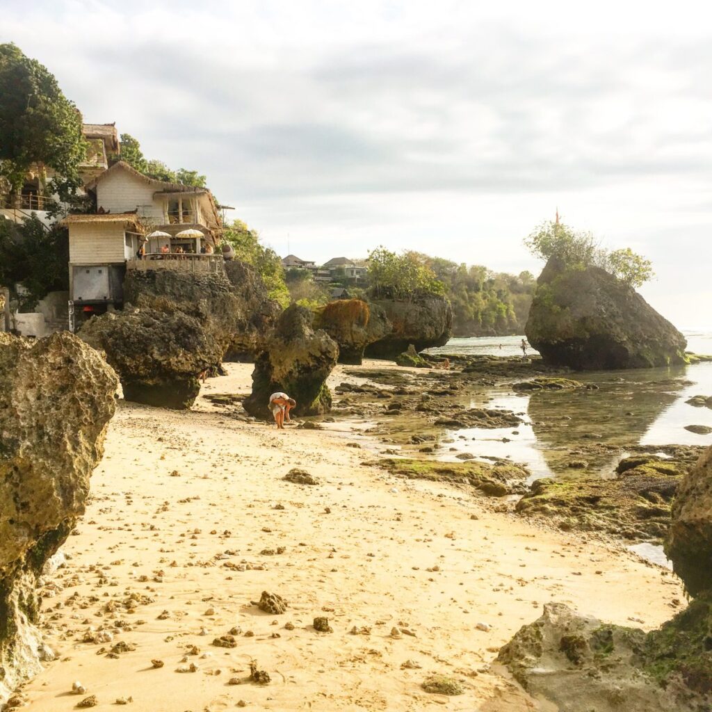 WoW ! Wat een toffe plek . Dreamsea Bali Surfhotel/ restaurant zit als een zwaluwnestje tegen de rosten van PadangPadang beach aangeplakt . Met lowtide slenter je er zigzaggend tussen de rotsen zo naar toe. Je kan ook via de mainroad maar das minder mooi. Super relaxte plek met slaapkamers met uitzicht op zee , wat zeg ik , je kan bijna vanaf het terras de zee in duiken . Lekker bohemian qua look and feel en met een uitstekende keuken . Witte wijn staat altijd koud en als je trek in Yoga heb kijk je even op het activiteiten bord wanneer er een klas is . Kijk niet vreemd op als er smorgens bij het ontbijt een aap naast je zit .