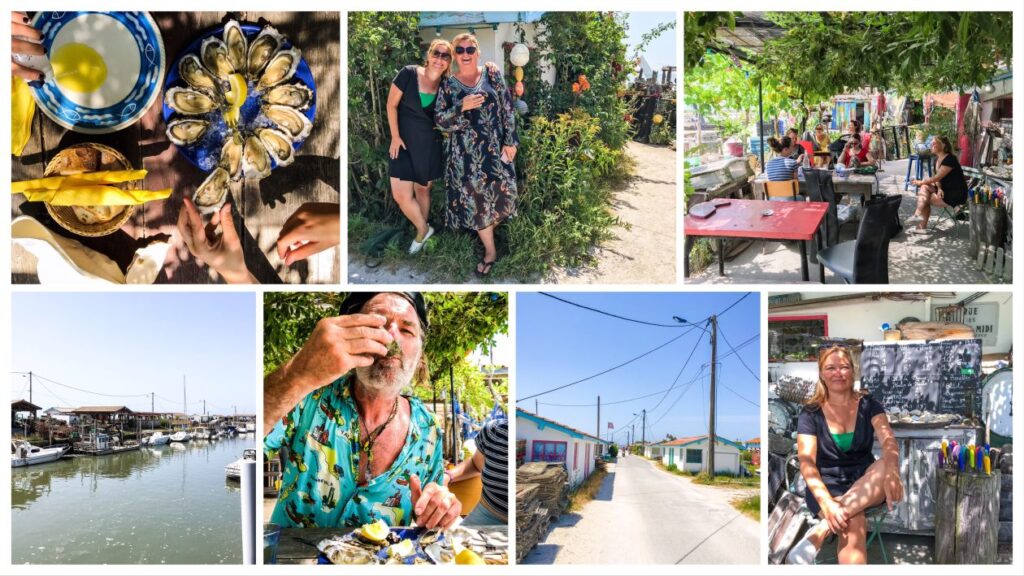 Joel is de 3e generatie oestervissers.”kijk dat is mijn opa” en hij wijst op een stoere gast op een zwart wit foto. Zijn werkplaats / steiger / kantoor/ keuken is ook meteen “Cabane 21″ en heel erg tof oester restaurant in Andernos-les-Bains aan het bassin van Arcachon . Man dit zijn de beste oesters die we tot nu toe gegeten hebben . Eva mompelt dromerig , hummm romig en rolt met haar ogen .Even onthouden ” Station des Gus Cabane 21 “in Andernos-les-Bains .