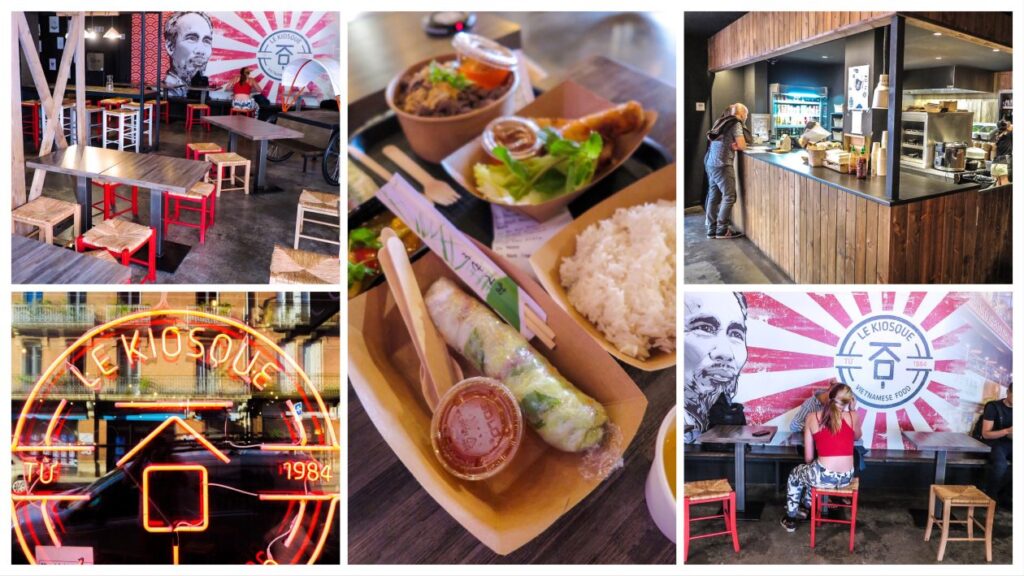 Toulouse . Pal naast hotel Mama Shelter zit Le Kiosque Peri . Restaurant / Take away Vietnamees .Goed sfeertje .Lekker , snel en witte wijn in kartonnen bekers .Toulouse is tof .
