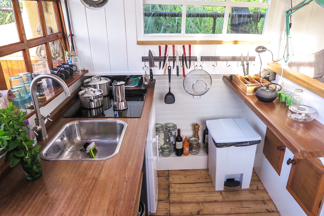 De keuken is klein en eenvoudig , een vier pits inductie kookplaat zonder oven