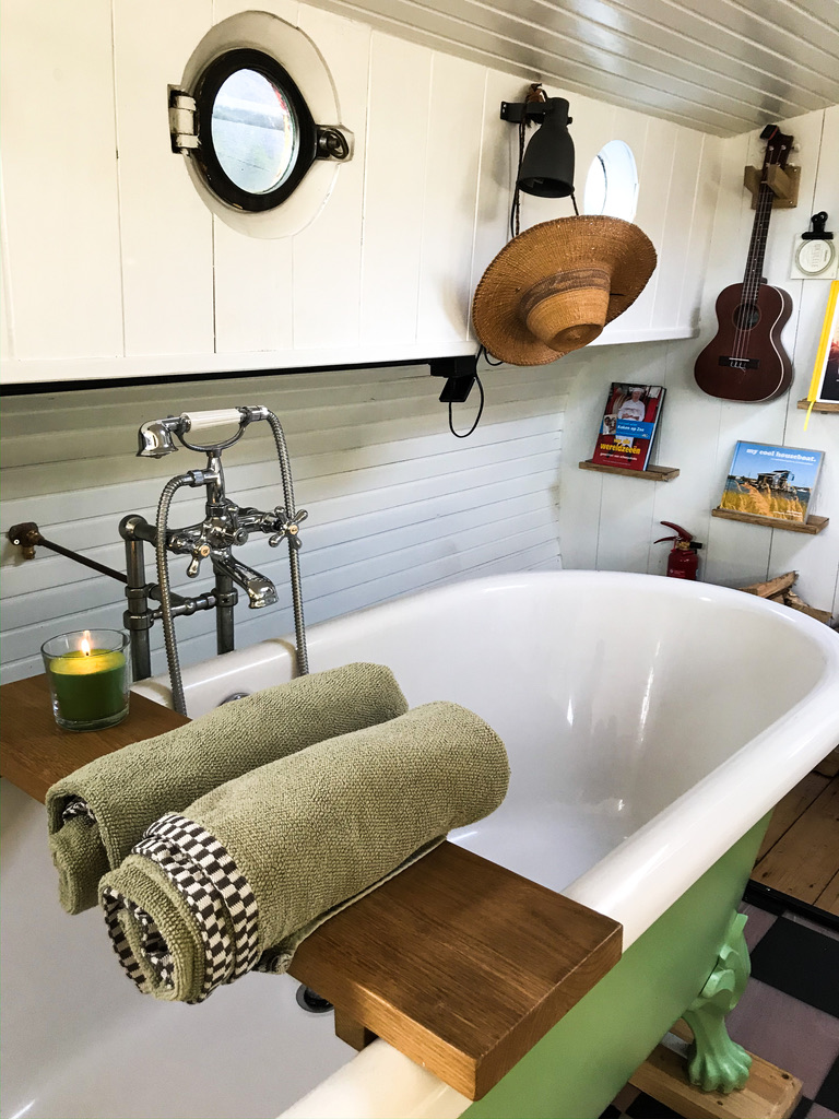 In de boot is een toilet en bad en bij de jachthaven zijn ook toiletten en douches .