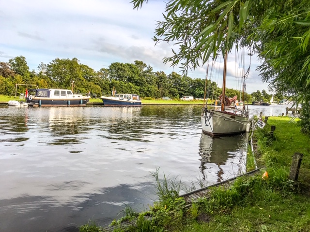 Tjalk “de Dankbaarheid “ 100 jaar oud en nog springlevend .  ligplaats “Jachthaven de Woudhaven ” , eiland in het Alkmaardermeer  . De zelfbediende  pont brengt je er in minder dan een minuut . Maar je heb meteen het eiland gevoel te pakken .  Er is een prive terras voor de gasten met uitzicht op het meer . De Woude – Alkmaardermeer  . Waar ? . Op 30 minuten rijden van Amsterdam en het Noord-Zeestrand . Je kan niet varen met de dankbaarheid , je kan er wel logeren . Je kan elektrische fietsen huren die gratis worden afgeleverd bij de jachthaven . In het dorpje Driehuizen op 5 minuten rijden van de Dankbaarheid kan je fluisterbootjes huren bij cafe/restaurant de vriendschap om de natuurgebied de Eilandspolder te ontdekken en bij terugkomst kan je op het terras met het mooiste uitzicht van de polder wat drinken en eten .