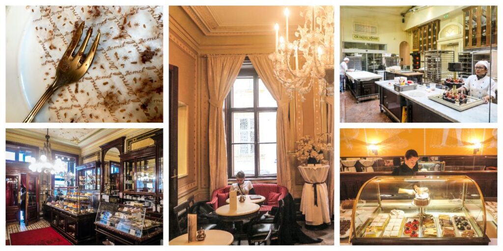 Wakker geworden met rails en bielzen onder ons bed . Na aangekomen te zijn in Wenen op een draf naar De Hofzuckerbacker Demel voor ontbijt met taart en een bak fijne koffie .