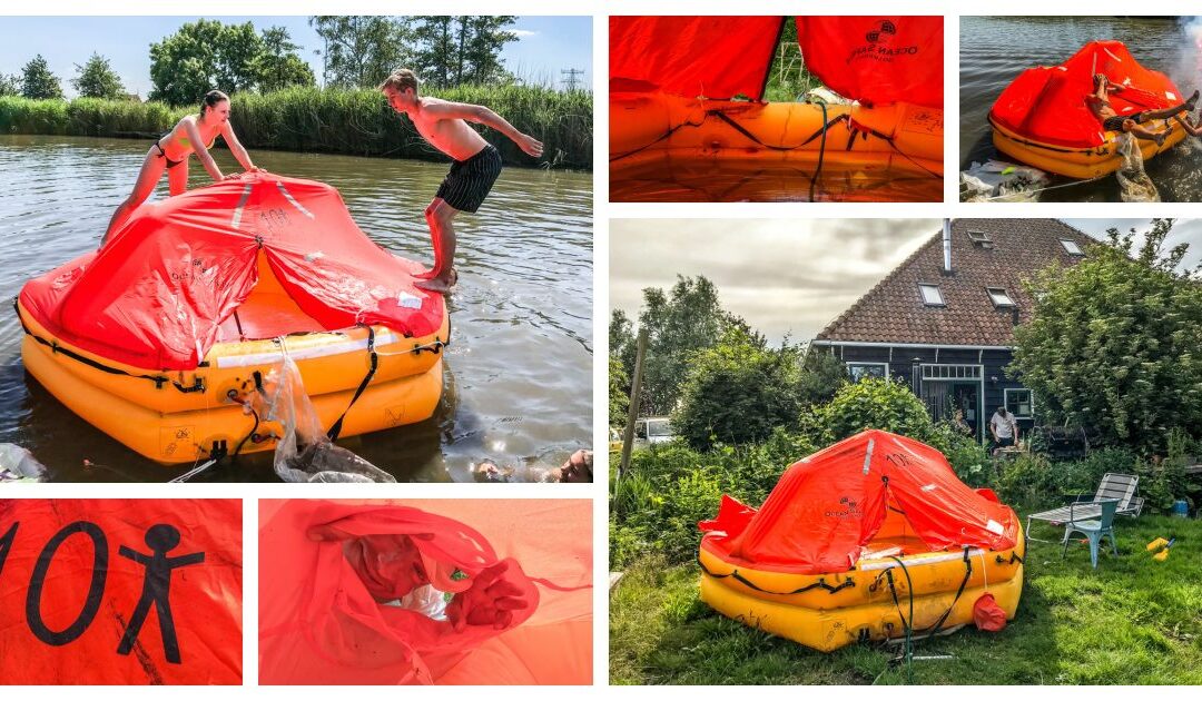 Een reddingsvlot moet om de zoveel jaar gekeurd worden. Afgekeurden reddingsvlotten nieuw in doos worden voor een appel en een ei aangeboden op Marktplaats .