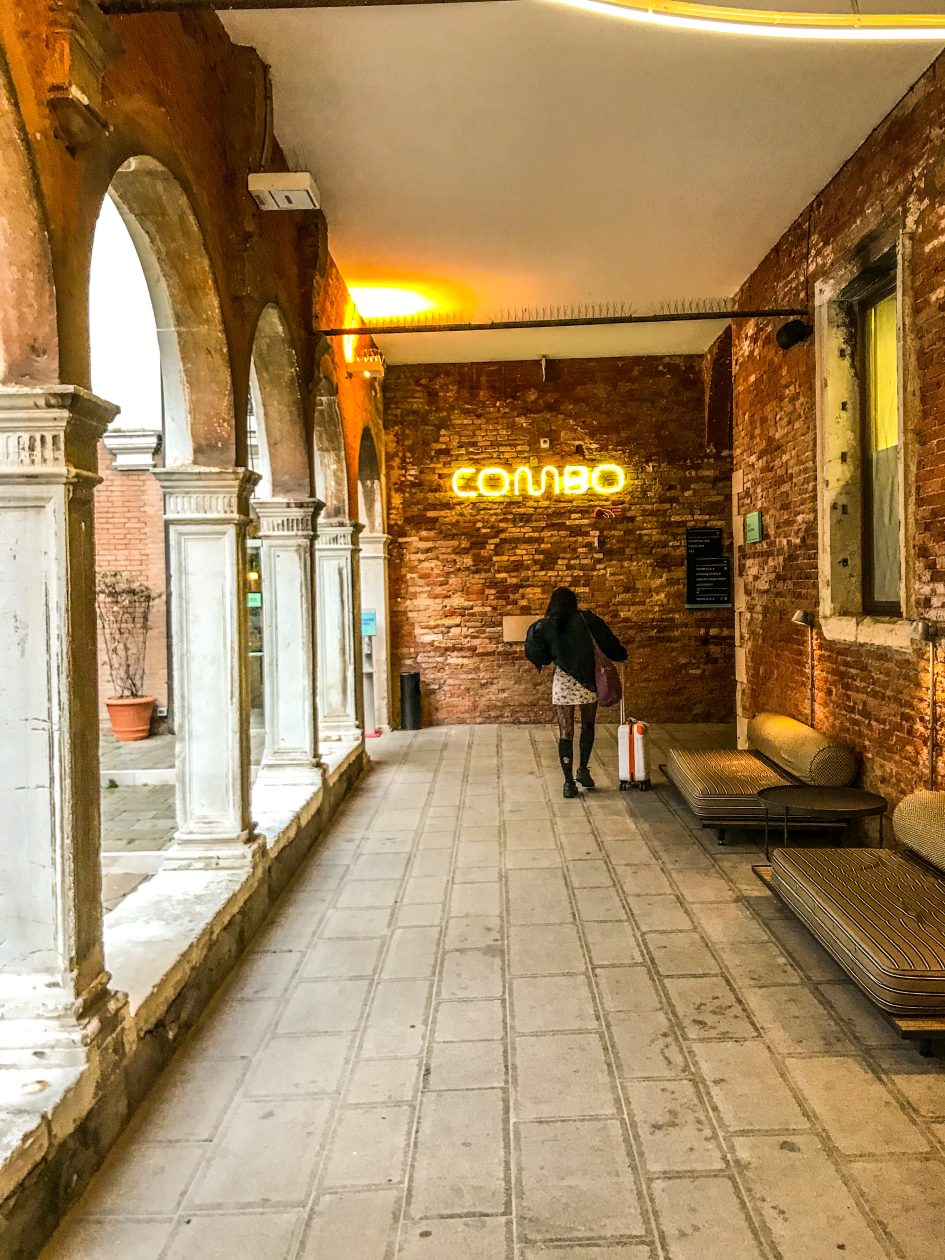 Slapen kan je heel erg fijn bij oa het Combo Hostel – een oud klooster wat ingetogen verbouwd is tot hostel – fijne grote kamers – met uitzicht op de buren aan de andere kant van het kanaal – grote binnenplaats waar je lekker kan zitten in de schaduw of zon met een drankje –  het hostel ligt een eind buiten de toeristisch plekken en direct aan de laguna met uitzicht op het kerkhof eiland San Michele waar je met een vaporetto ( bootbus)  een bezoek aan kan brengen – ontroerend mooi – rond het Hostel zijn diverse restaurants waar je lekker kan eten –