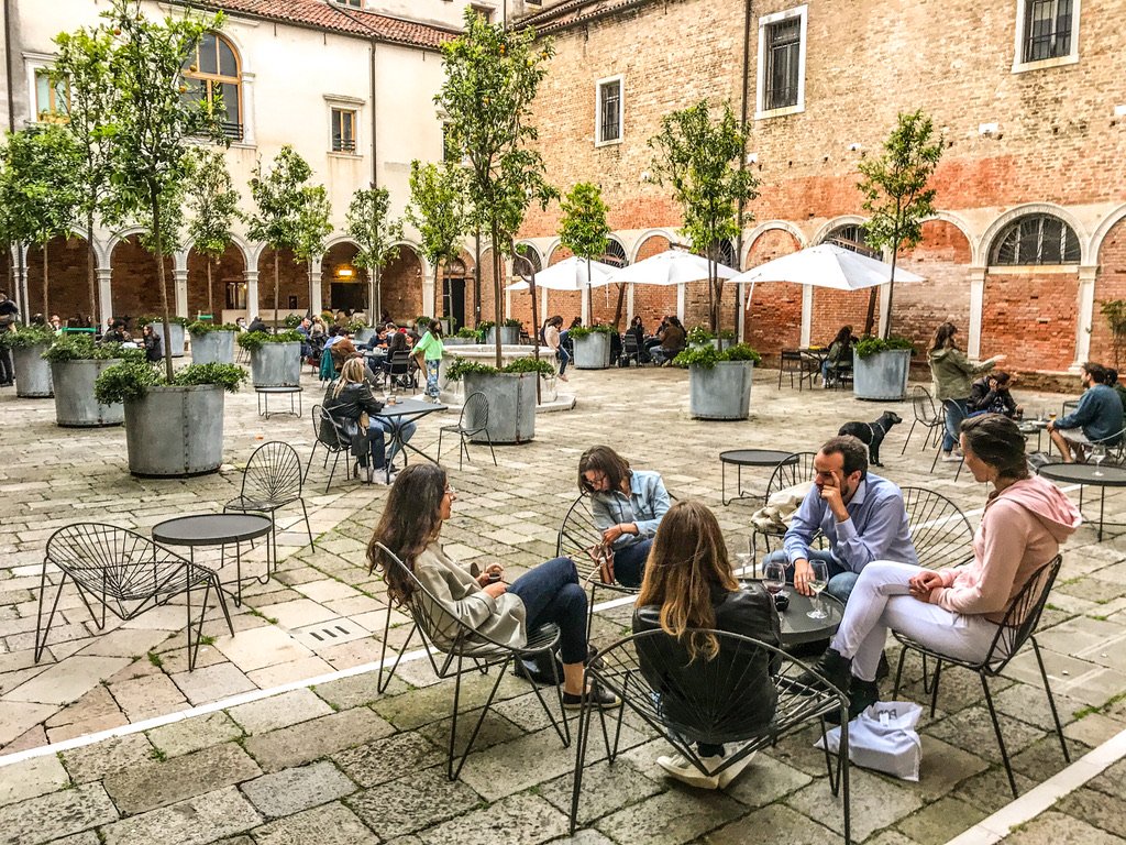 Ik sprak zittend voor cafe Florian op het San Marco plein een man , die terwijl hij zijn vriendin nog eens bijschonk zei : ik heb met mezelf afgesproken dat ik “haar” minstens een keer per jaar meenemen naar Venetië om hier bij Florian en fles witte wijn leeg te drinken op het leven – Salute !