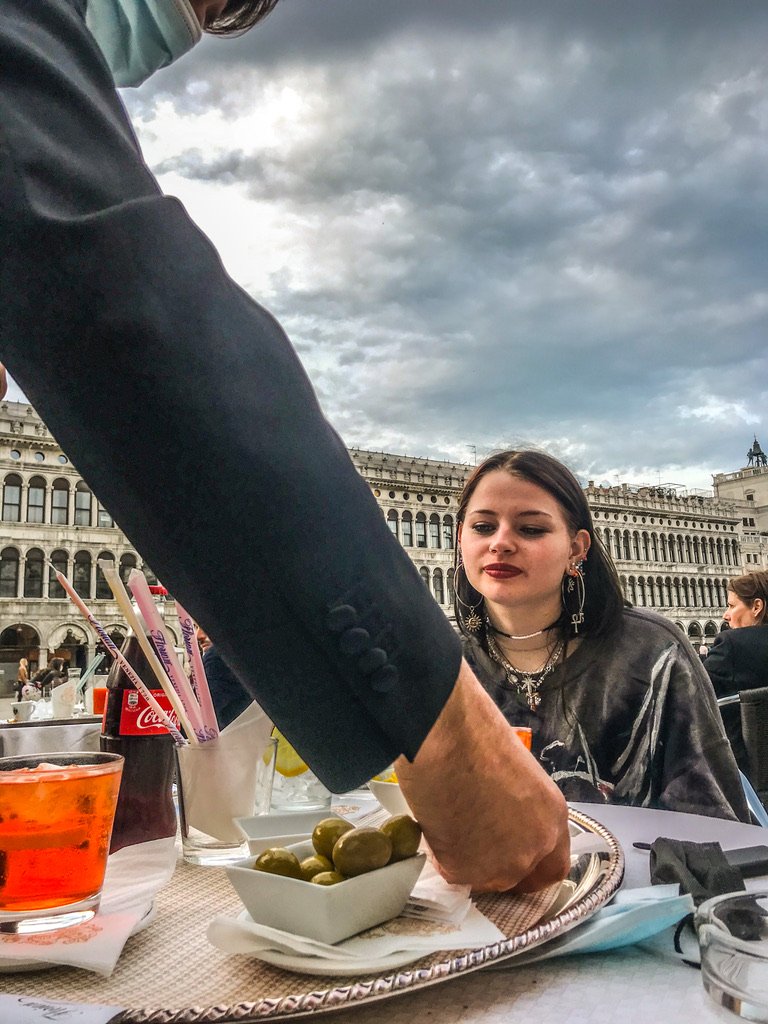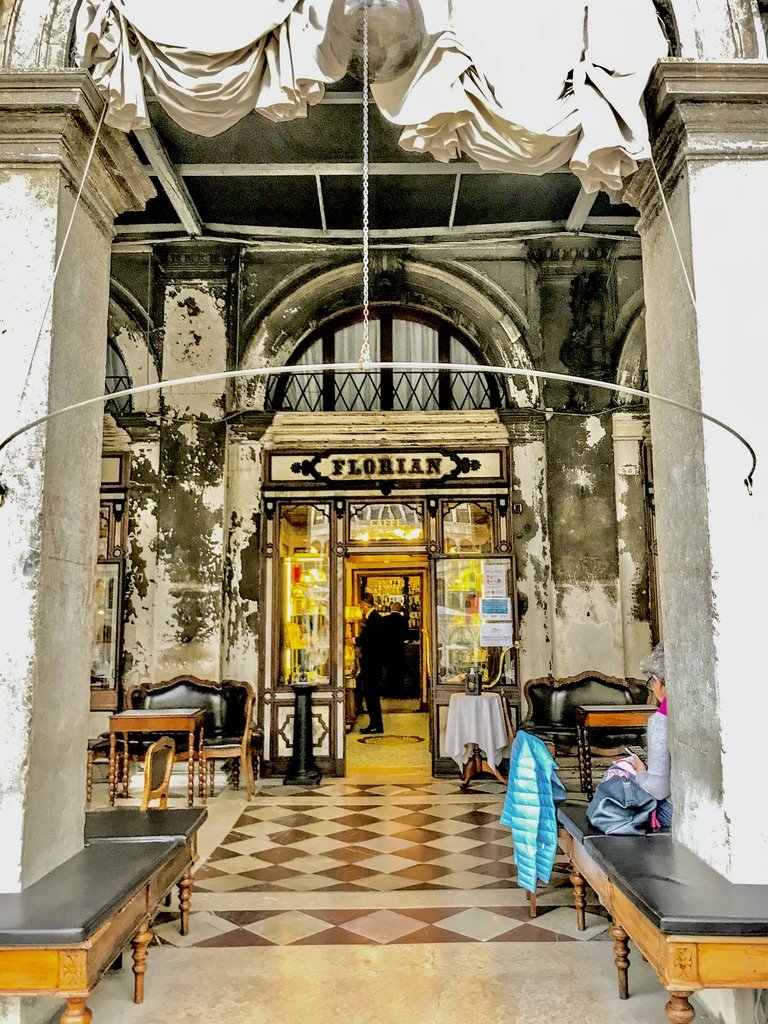Ik sprak zittend voor cafe Florian op het San Marco plein een man , die terwijl hij zijn vriendin nog eens bijschonk zei : ik heb met mezelf afgesproken dat ik “haar” minstens een keer per jaar meenemen naar Venetië om hier bij Florian en fles witte wijn leeg te drinken op het leven – Salute !
