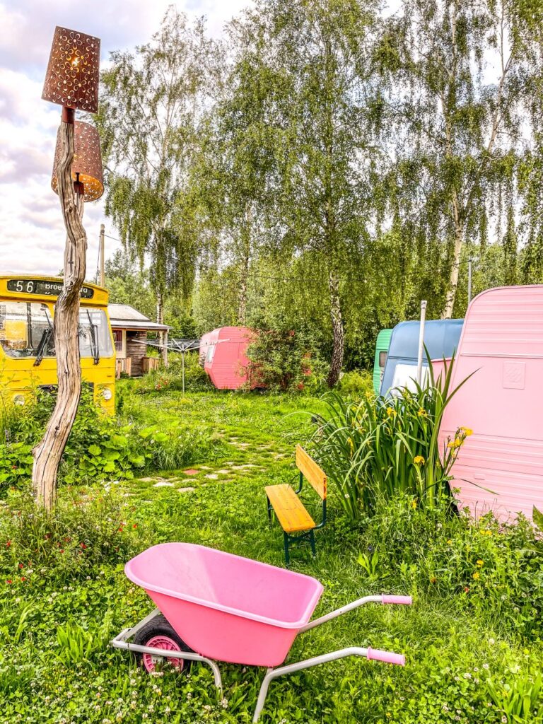 Op 10 minuten asfalt rijden van amsterdam ligt verscholen in een wilde tuin en pal aan de Vinkeveense plassen Tuinhotel Tralala – wij zitten fijn in een van de tientallen vrolijke makende caravans die gezaaid zijn in deze groene jungle – borrel / chillen en ontbijt doe je in de gestrande stadsbus – boekie lezen / spelletje kaarten kan in het Tuincentrum en receptie naast de houtkachel – als de drukte van de stad je even teveel word en je bent op zoek naar vogels die aan het ouwehoeren zijn in de toppen van de bomen en het enigste geluid wat je hoort is de schaterlach van je buren en het proosten van de glazen – dan is Tralala wat voor jou – de stad voelt ver weg en toch zit je er op de lome terugweg in een wip –