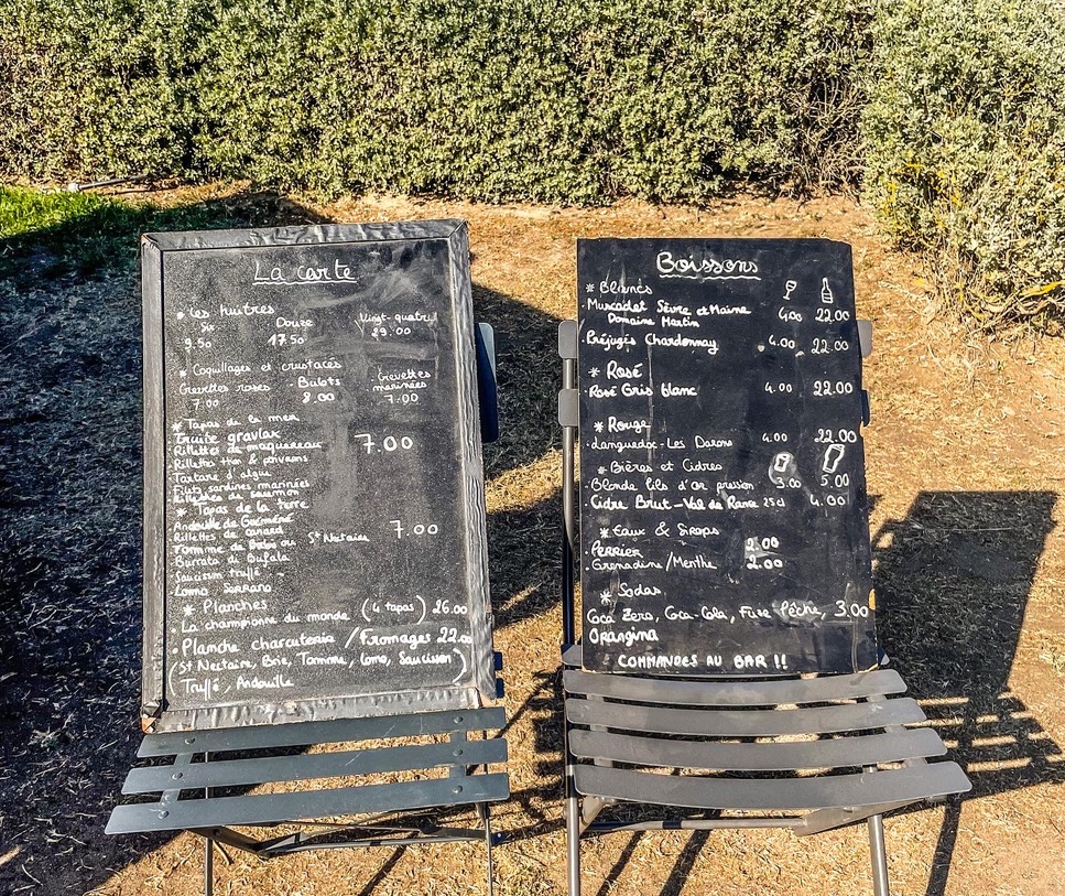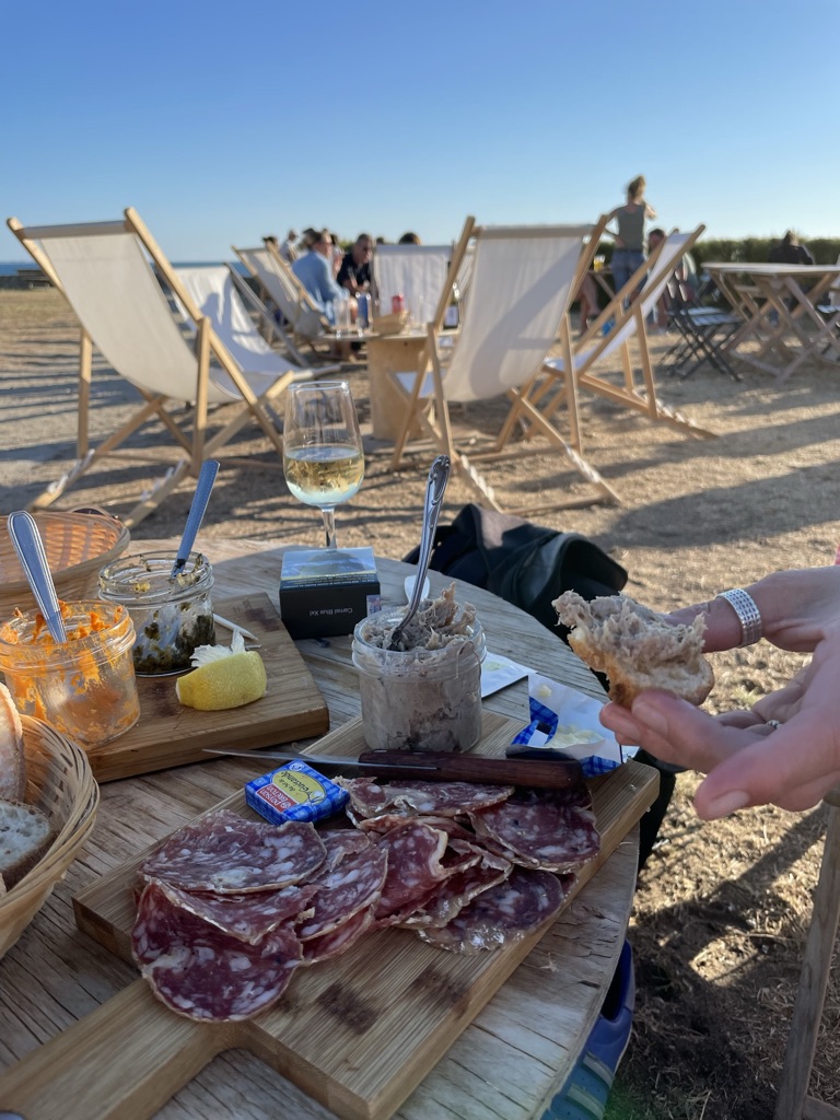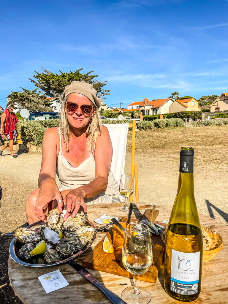 We zitten in de zon met uitzicht op de zee – uit het kleine houten huisje van Huitres & Co komen een stroom van een verbazingwekkende hoeveelheid lekker dingen op onze tafel – vanavond zoeken we met de Park4night app (thanx Marion voor de tip) een gratis slaapplekkie – salute.