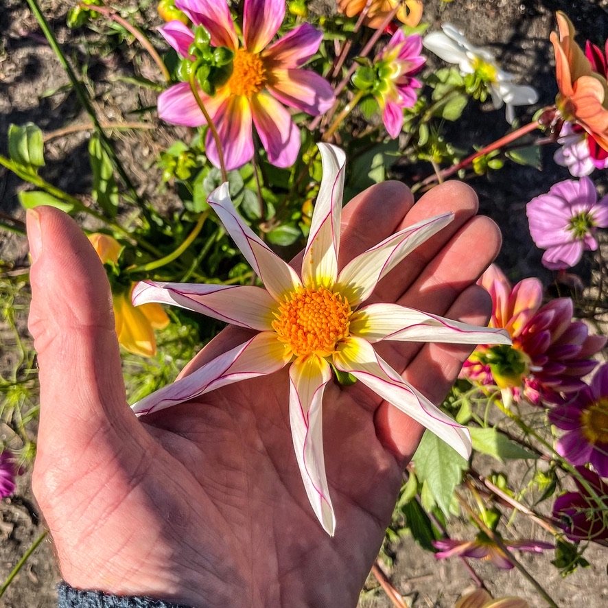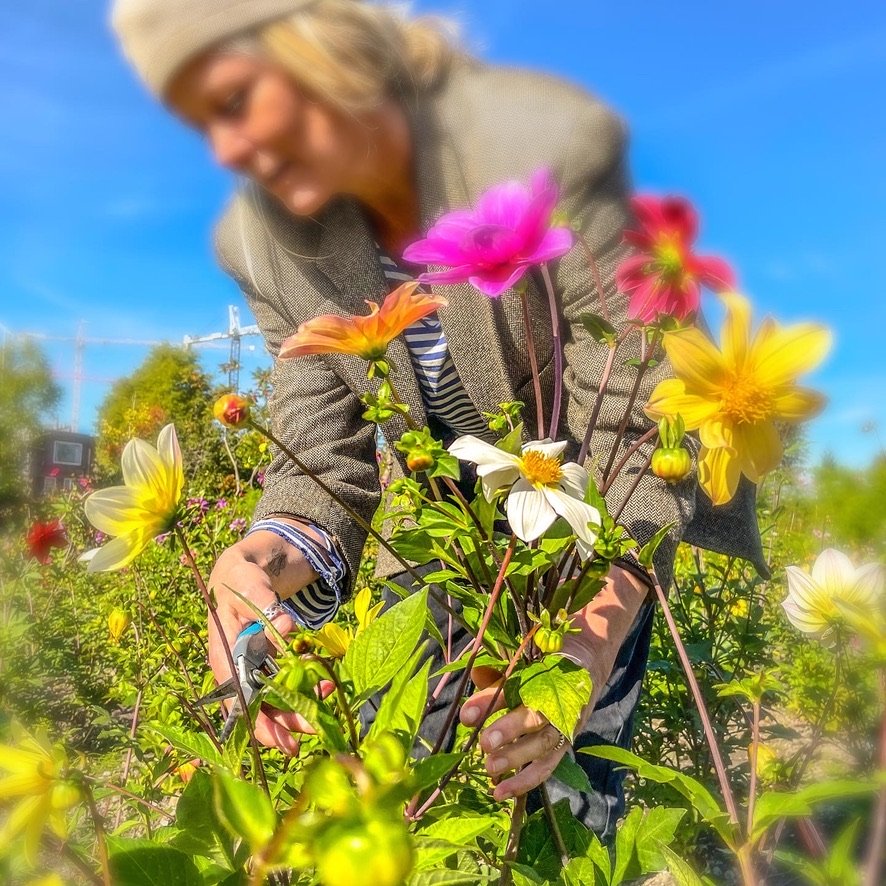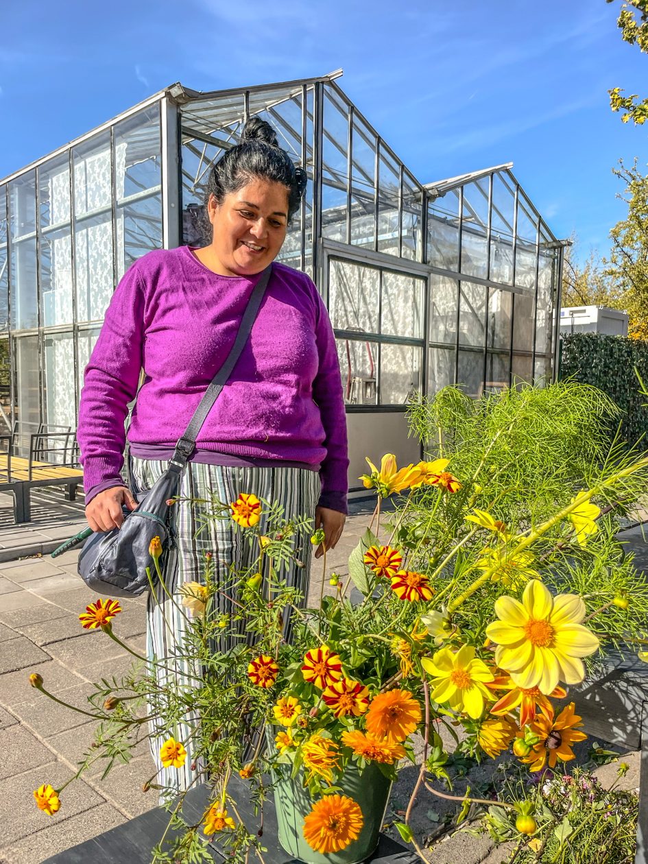 Stads oase – Amsterdam – Noorderbloemen – dorst naar bloemen en groen wees ons de weg door de altijd 24/7 bezige stad – hunker naar gras onder je zolen – yep- lyrische tekst – maar deze is afkomstig van een deeltijd Amsterdammer met diepe wortels in de prut – Dagmar runt / beplant/ snoeit / bemest /stekt en houd van deze groene plek tussen het grauw – blij sleurt ze ons langs bloembed en kas – met een snoeischaar van haar knippen we samen een boeket en dat voelt toch groener dan een gekocht in cellofaan – Noorderbloemen is geopend van maandag tot donderdag van 10 tot 3 –