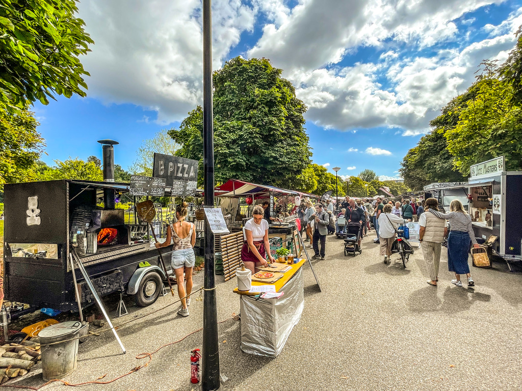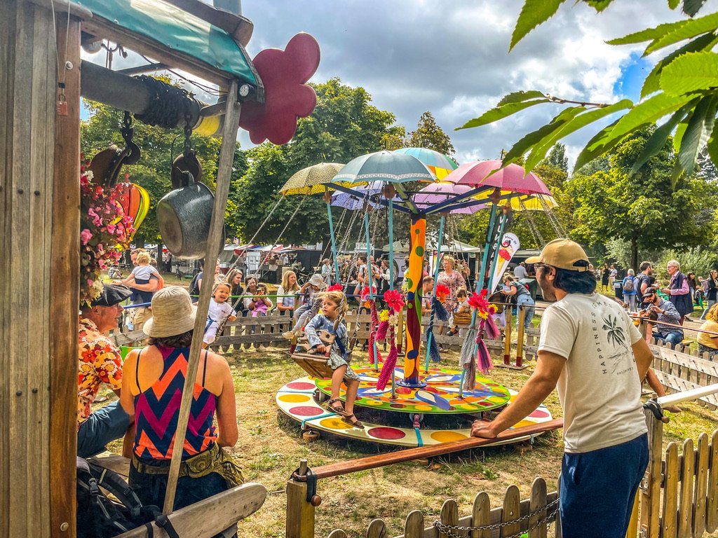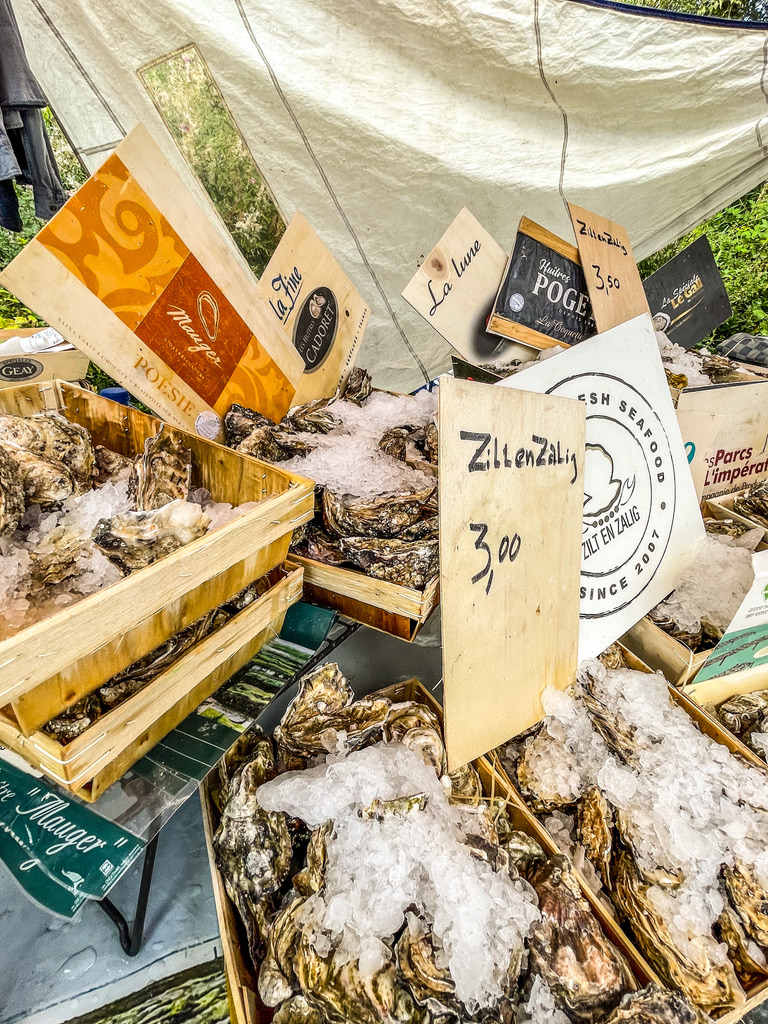 Amsterdam – Pure Markt in Park Frankendael – elke laatste zondag van de maand – de draaimolen tolt – kinderen schateren – ouders met een glas bubbels – oesters op ijs- de muzikant speelt op een banjo -de zon schijnt – van mij mag het elke zondag de laatste van de maand zijn –