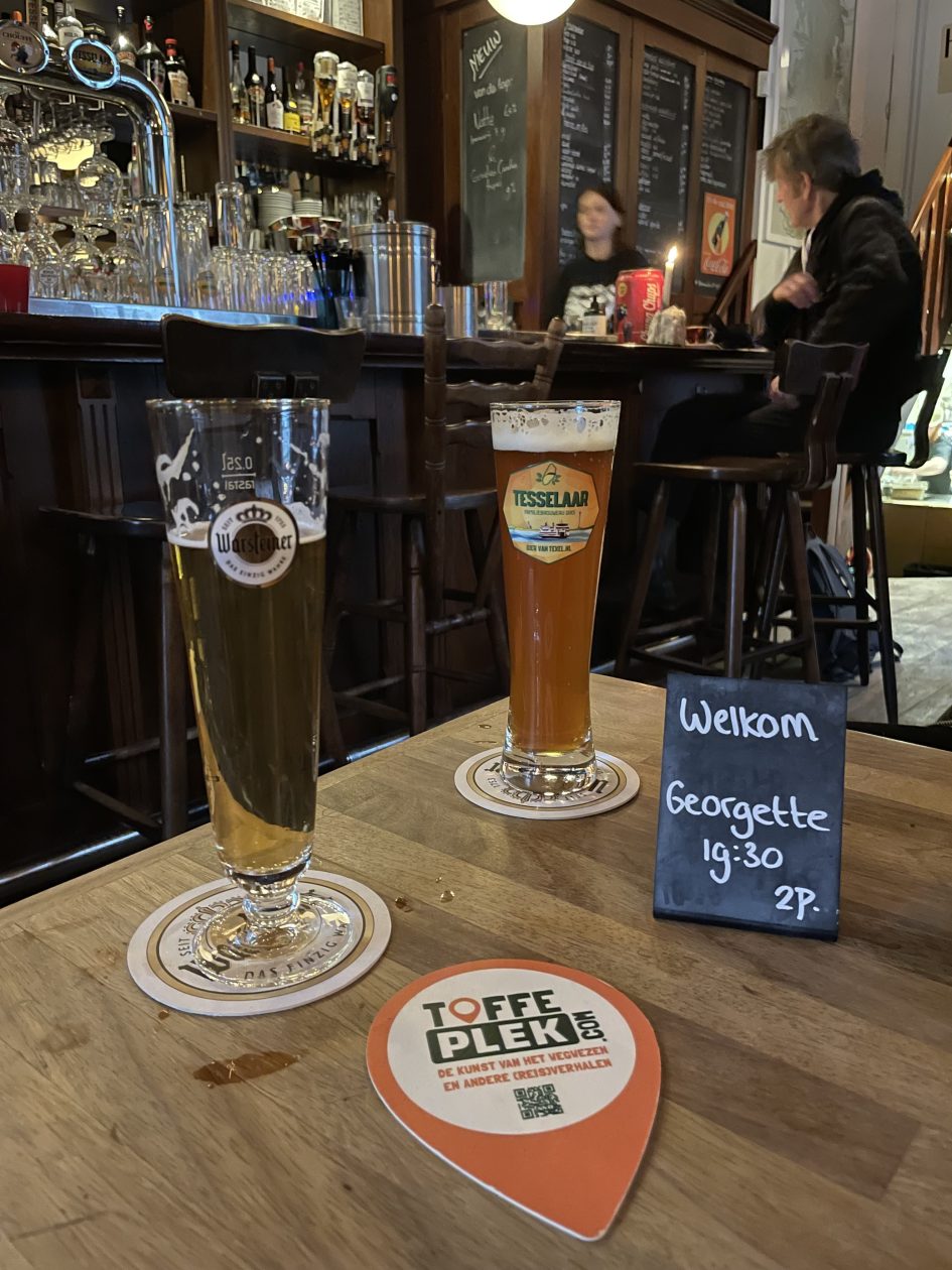 Amsterdam -Bickerseiland- cafe/restaurant Blaauwhooft- omdat de website van www.toffeplek.com een vrolijke chaos is en het een gemeenschappelijk reisproject word van Peet en mij – zaten we in “de bogen” bij Eric de Website dokter – omdat je van zo,n diagnose en enorme dorst krijgt – renden we door een Nederlandse regenbui naar de dichtstbijzijnde cafe op de hoek – Blaauwhooft is een heerlijke bruine kroeg/ restaurant – een lekkere mix van wat verdwaalde toeristen en vaste klanten met een verhaal – een ober die zijn vak met plezier uitschenkt – Louie en Jan – twee genieters van het Blaauwhooft – morsten gul hun levensverhaal over onze tafel onder de cafeluifel – Proost mannen – tot de volgende keer – Blaauwhooft een Amsterdams cafe met een kloppend hart –
