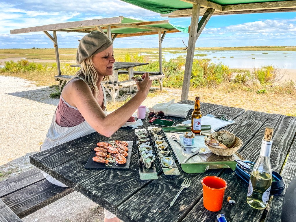 Zwerven langs de Frans Atlantische kust – we houden van deze lange kustlijn – hij is gevarieerd – en per 100 km zie je de architectuur en het landschap veranderen – je kan er de drukte opzoeken – maar het barst er nog van de verstilde baaitjes met een hoog “Alleen op de wereld”-gevoel – je hoeft niet perse van oesters te houden om hier te genieten – wij werden ruimschoots op onze wenken bediend met onze hunker naar oesters vers uit de zee.