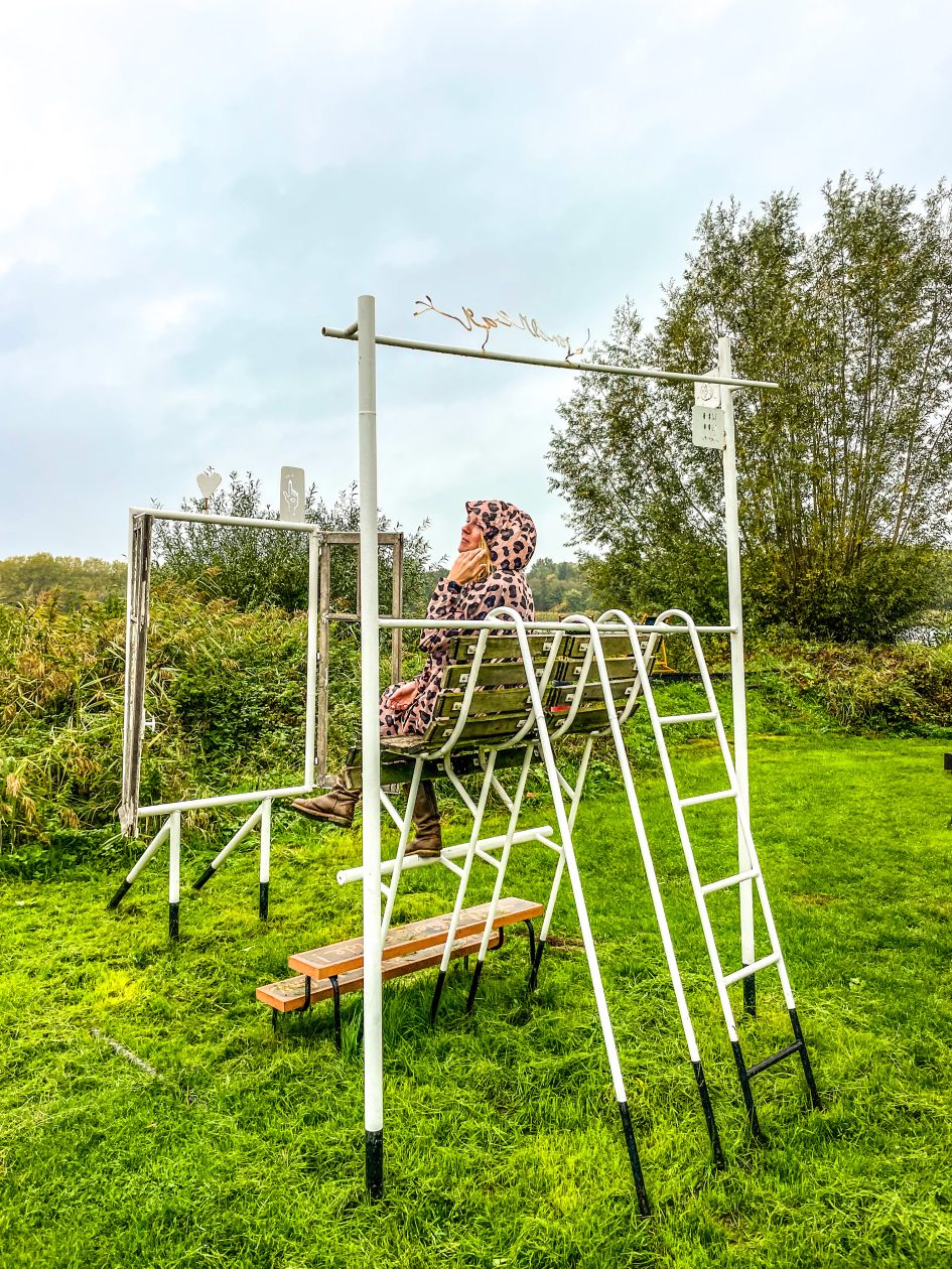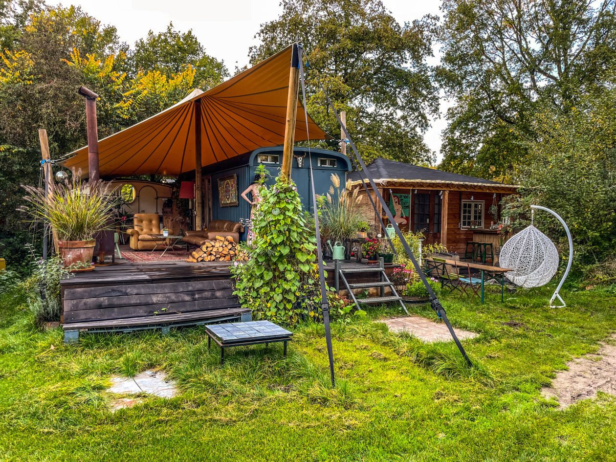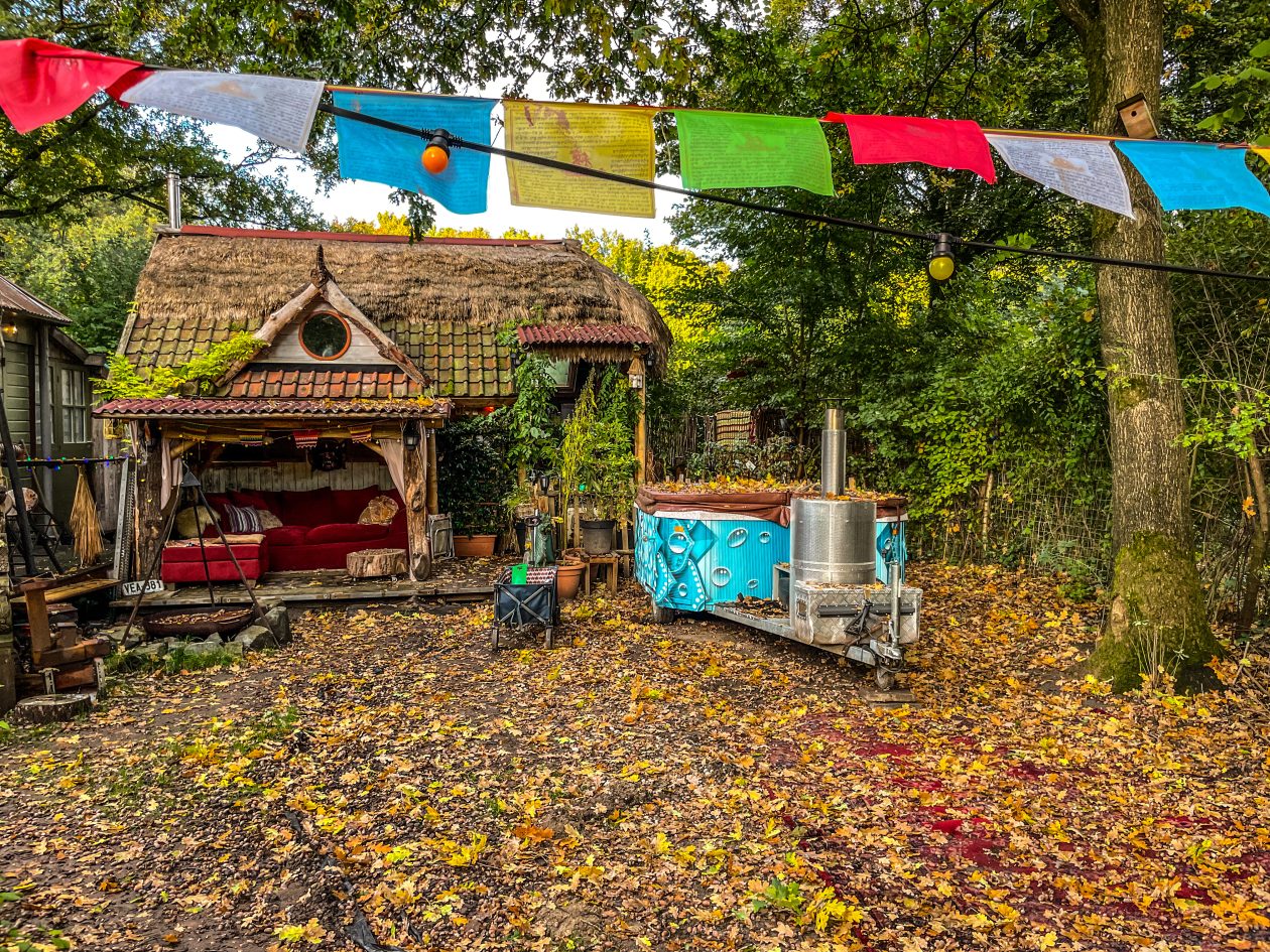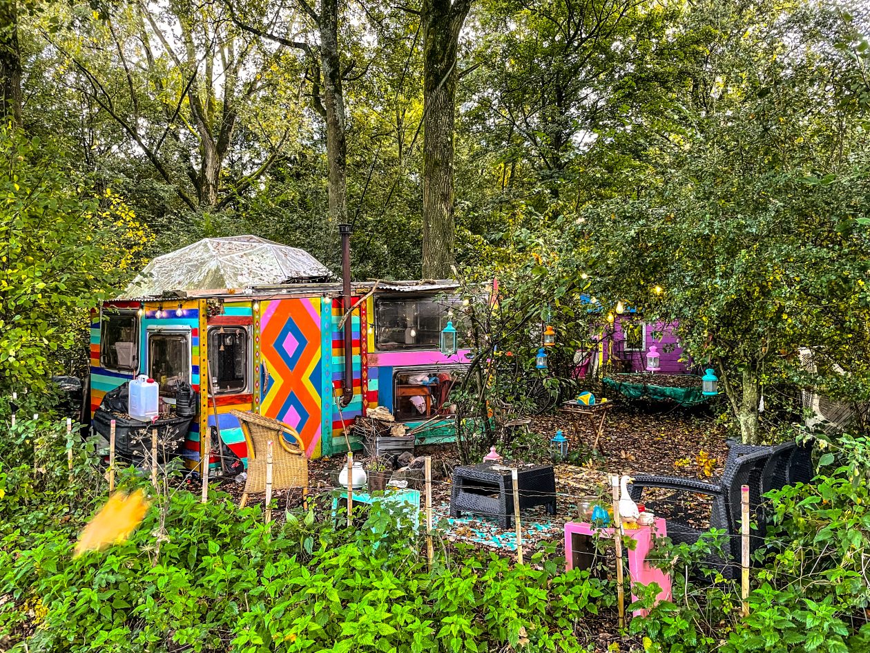 Lieveling slenter je mee – tis niet koud en overal knetteren de kampvuurtjes – tis windstil en de rook kringelt recht omhoog- ff kijken naar nieuwe bouwsels en toffe campertjes – loop ff mee – op pinterest staat de hele wandeling .