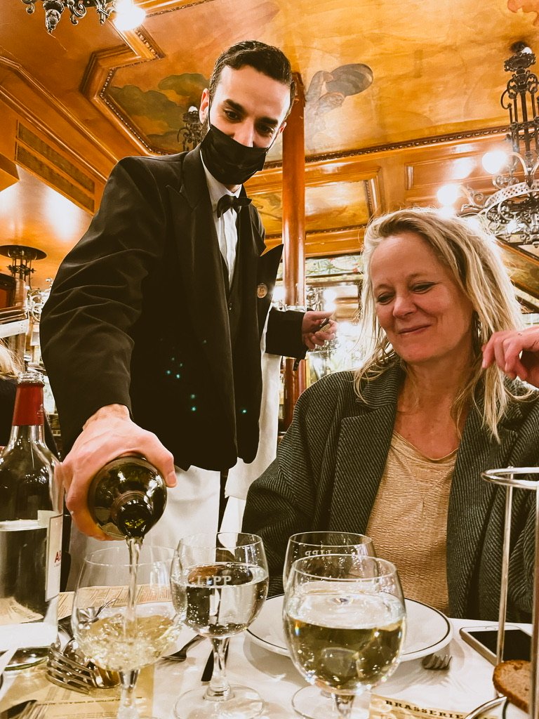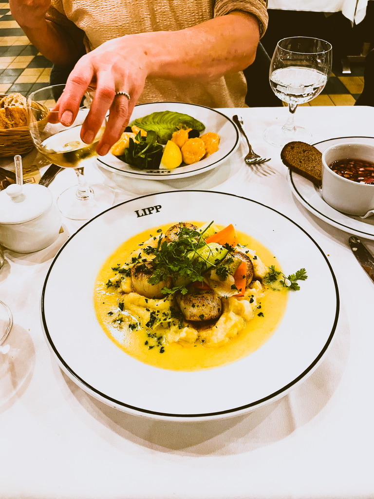 Lipp is geopend in 1880 en sindsdien is er weinig veranderd – de tijd lijkt stil gestaan te hebben – de plek waar mijn lievelingstoetje het best smaakt (Ile Flottante) – waar de obers nog obers zijn en het koper gepoetst is – waar je glas onhoorbaar en discreet nog eens gevuld word – hier geen muziek of happy hour – slechts geroezemoes en de dans van bestek op porselein – ff noteren Lipp in Parijs.