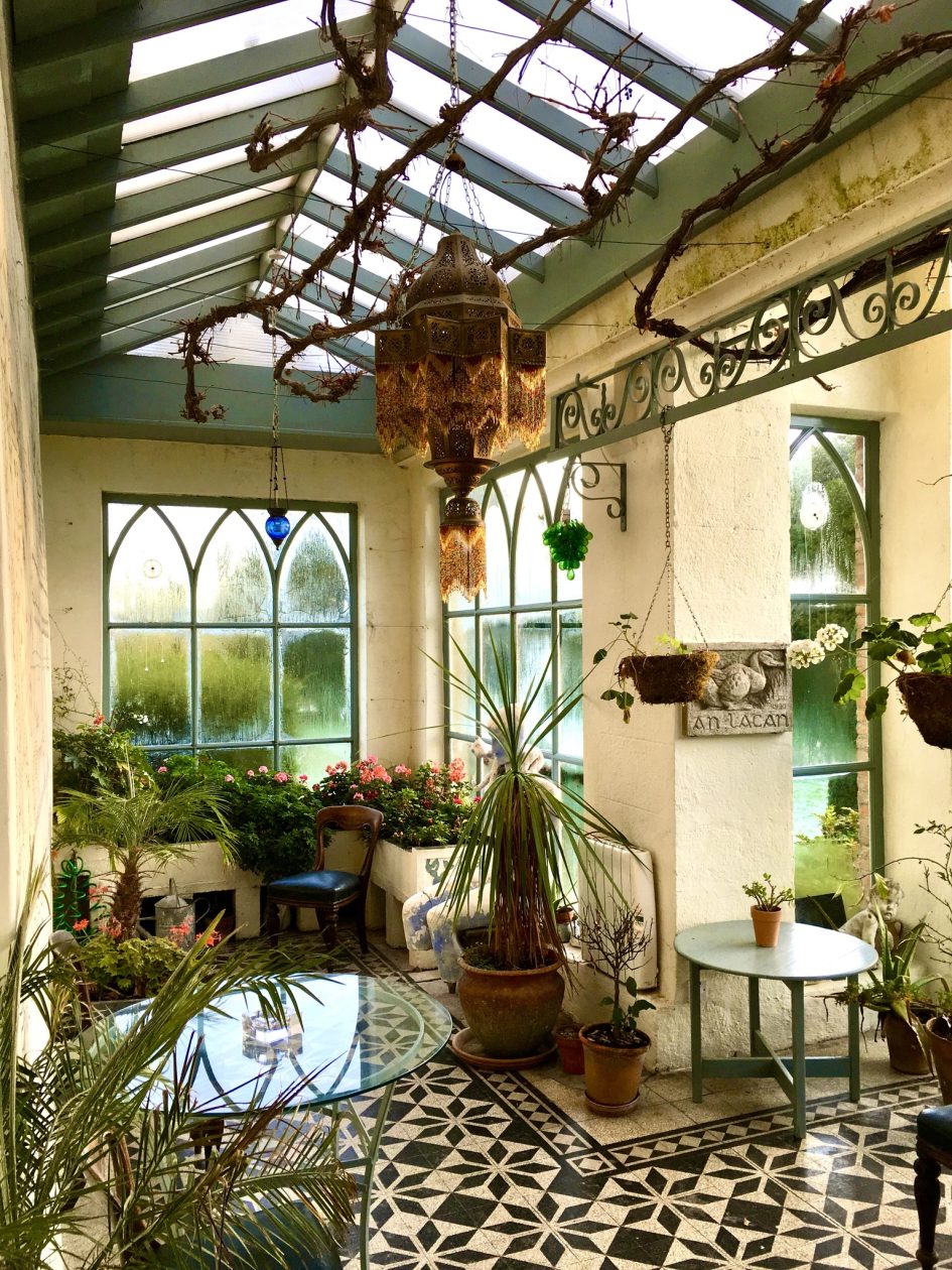 Dikke tapijten op de vloer en muren vol gehangen met voorvaderen en objecten uit en lang en rijk verleden . Ik schenk een glas whisky in en na twee slokken voelen ik me tamelijk adelijk. Het bed ontvangt me met open armen en ik zak in een diepe Koninklijke droom weg – De volgende ochtend bij het ontbijt komt Alexander , de kasteelheer even een kop koffie met ons drinken – derde of vierde generatie van het geslacht dat hier woont – aardige gozer – meer het model loodgieter dan landheer – Na het ontbijt even door de tuin gewandeld voor een frisse neus en nieuwe inzichten zoals een heer van stand dat beaamt – prachtig plek – ff noteren –