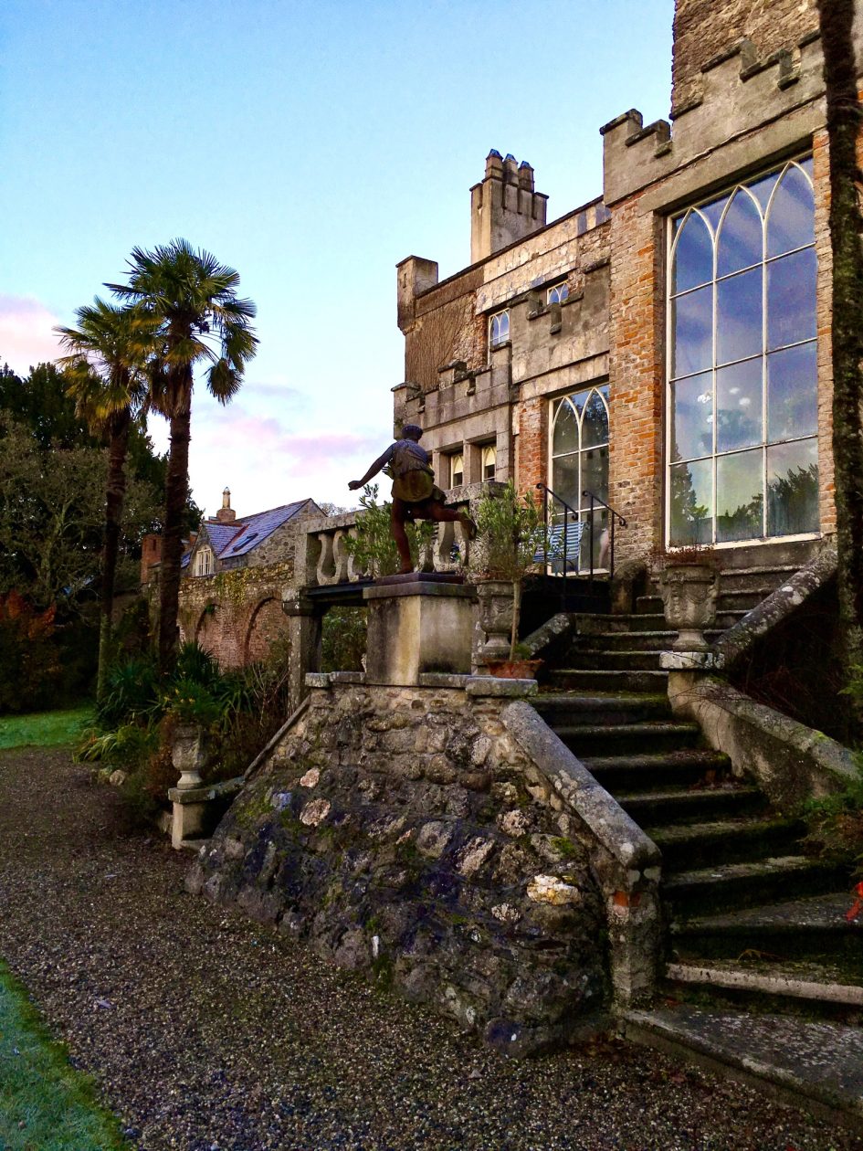 Ierland / Clonegal in de Slaney-vallei grensend aan de Blackstairs Mountains – Met heer Ollie .B. Bommel in het hoofd reserveerden we een kamer in Huntington Castle .Een kasteel met een oprijlaan waar je liniaal langs kan leggen en met een eikenhouten voordeur bestand tegen een invasie . Bij aankomst horen we glas gerinkel , gegil , gekrijs en een woedende brul . Hij blijkt de kasteelvrouw te zijn die belaagd word door haar kroost . Children ! Verontschuldigt ze zich. Met een wijds armgebaar zegt ze The castle is yours , exploreert it .