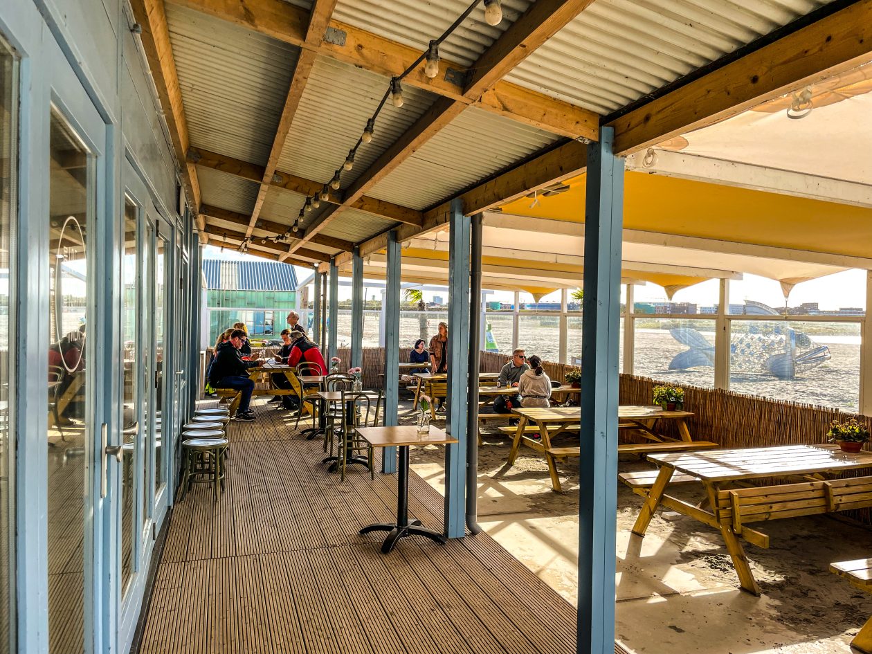 Amsterdam – Stads strand IJburg – Als je in de buurt van Amsterdam woont hoe je niet perse naar het Noordzeestrand om uit te waaien – Stads strand IJburg is weids en heeft plenty parkeerplaatsen – Ff de wind op je kop een zand onder je zolen en daarna een hap en een slok bij de Japanner – ToffePlek