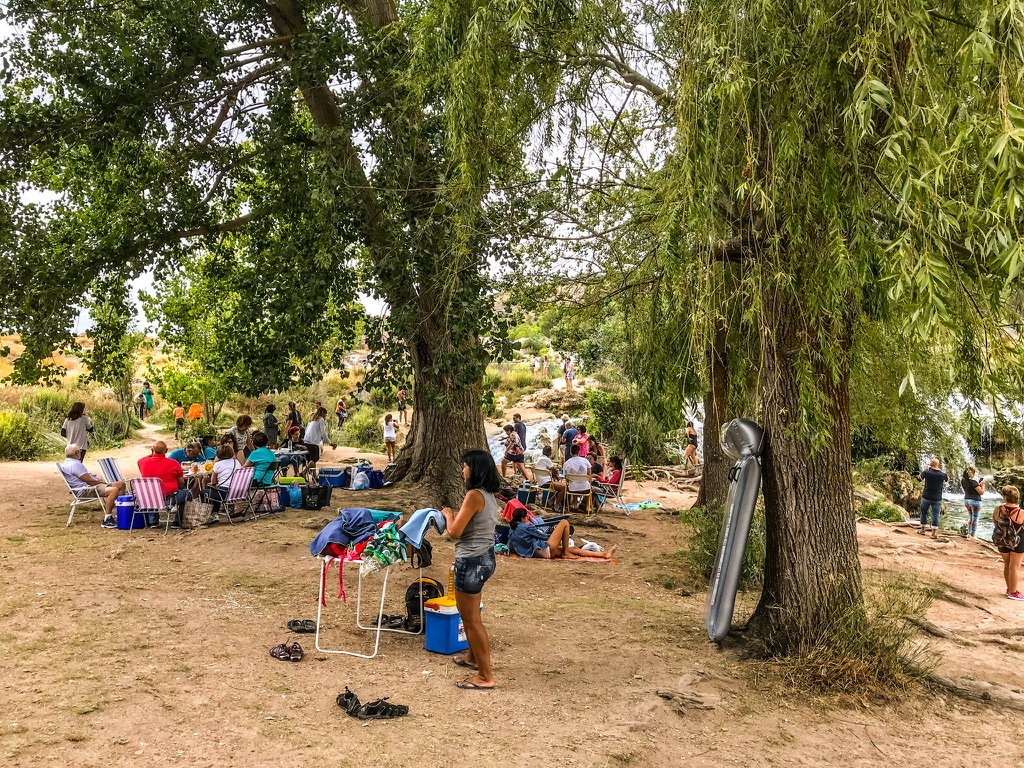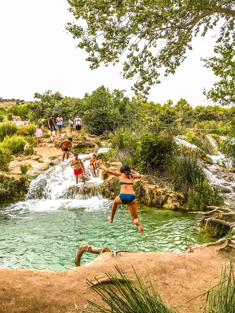 vermoedelijk de bekendste scene is dat Don windmolens aanzag voor reuzen en met zijn lans in de aanslag en woeste en onverstandige aanval uitvoerden op rijtje van rivierkeien gemetselde molens – deze molens zie je in dit dorre warme gebied met rode aarde overal staan- prachtig – Don Quichot is uiteraard fictie maar ik vind het toch heel erg tof om te logeren in de herberg – de grot op te zoeken en aan de voet van zo,n windmolen te zitten – Venta del Celmin is de naam van de voormalige Herberg- je kan hem huren . als je er toch zit – ga even naar Lagunas de Ruidera – prachtige serie meertjes die met watervalletjes in elkaar overlopen – er is daar ook een camping en wat fijne restaurantjes