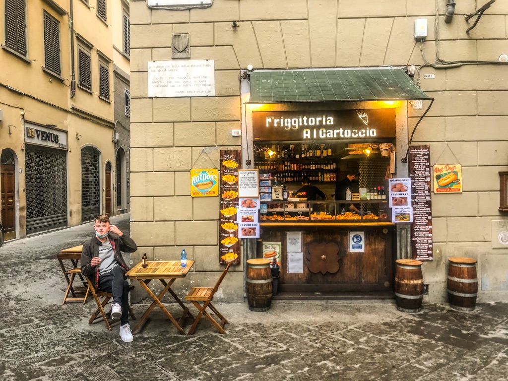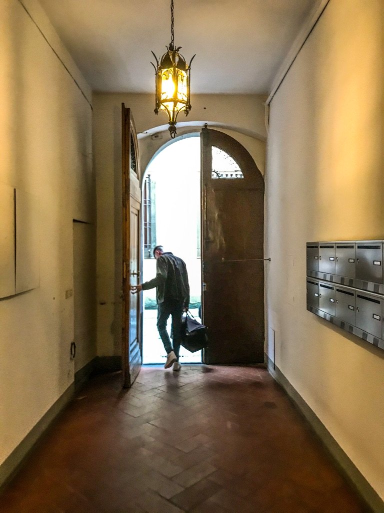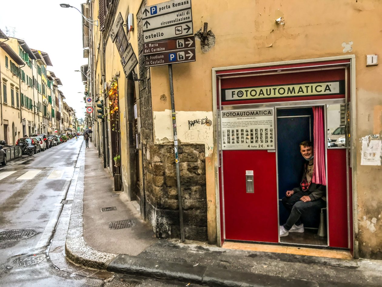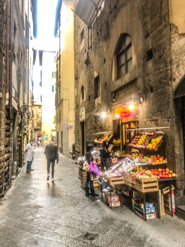 Kijken in het uffizi.it museum in Florence  met je neus boven op een Da Vinci of even op je gemak naar “De Geboorte van Venus” staren zonder gestoord te worden door andere bezoekers . Slapen deden we heel fijn en vredig  in een airbnb aan de rand van het Piazza Santo Spirito , een echt Italiaans pleintje zo uit een boek .Bomen voor de de schaduw ,terras voor de slok en hap  en op de kop een kerk . In de kerk werden heel vriendelijk door een pater rond geleid . Trots liet hij ons de houten christus gemaakt door Michelangelo zien en sleepte ons mee naar de geheime tuin . Beeldschoon om stil van te worden . We branden een kaars voor de Opa,s en Oma,s en gingen op de foto met de priester . We verdwaalde opzettelijk in het oude stadscentrum  en kwamen per ongeluk weer terug op ons eigen pleintje net op tijd voor een slok en een hap .