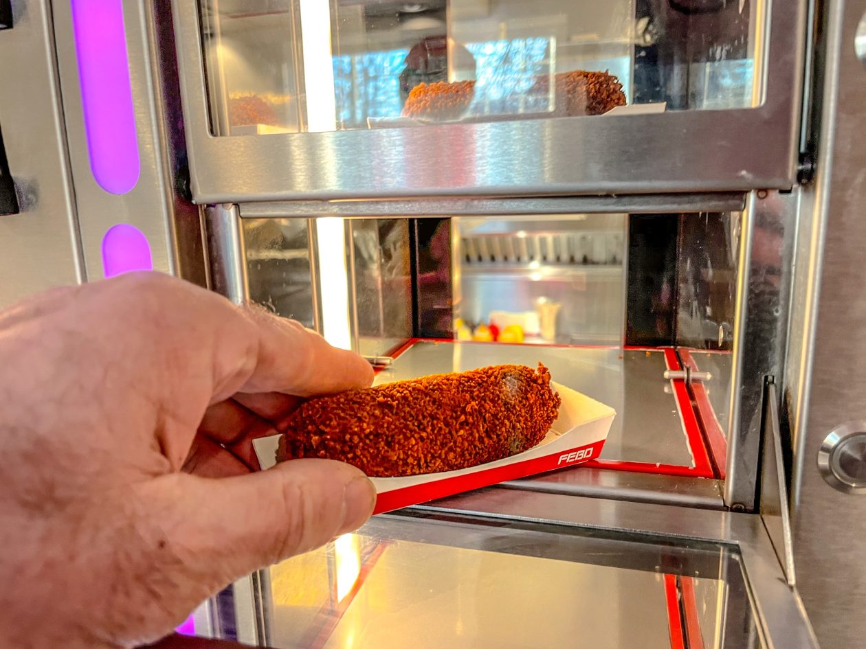 Typical Dutch Stuff – the unsurpassed satay croquette of the Febo – you pull it straight out of the wall and eating it on a typically dutch way , while cycling – this can be characterized as a realy realy realy Dutch experience – as an interested visitor to our country you can only going home with this great culinary Dutch story – try also  :  herring  , for sure / fries war , Fries with  satay sauce, mayonnaise with chopped onions / licorice / oliebollen / pink cakes / stew with sausage / pancakes and babi pangang.