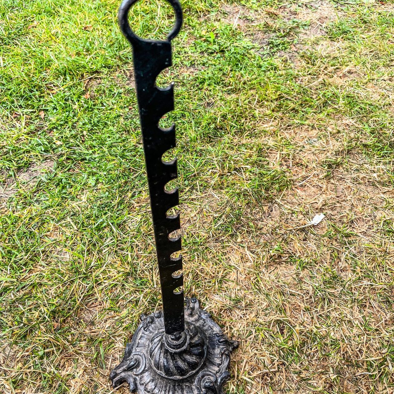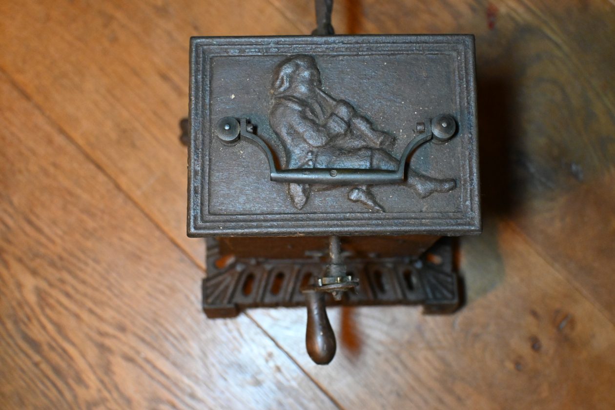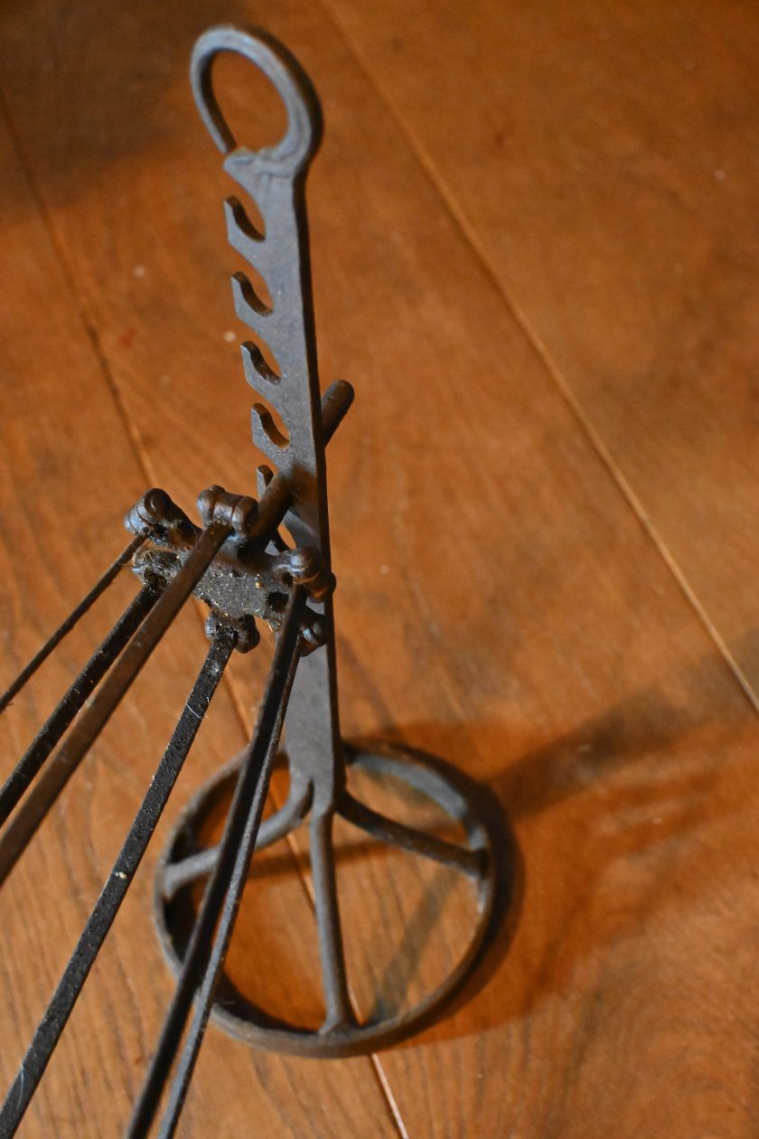 Gebraden kippenklok dekt de lading – maar net zoals vork/ vuilnisbak/spoorweg/ kater en snor is het Franse woord ervoor mooier -tournebroche – wat ik ervan gehoord heb is dat ze door klokkenmakers gemaakt werden – logisch- je heb ze in diverse afmetingen – die van ons komen uit 1860 – 1872 – maar draaien nog een steeds perfecte gebraden kippen – een tres charmant belletje geeft aan waaneer je hem weer moet opwindend-