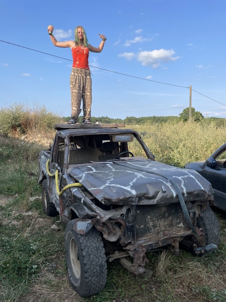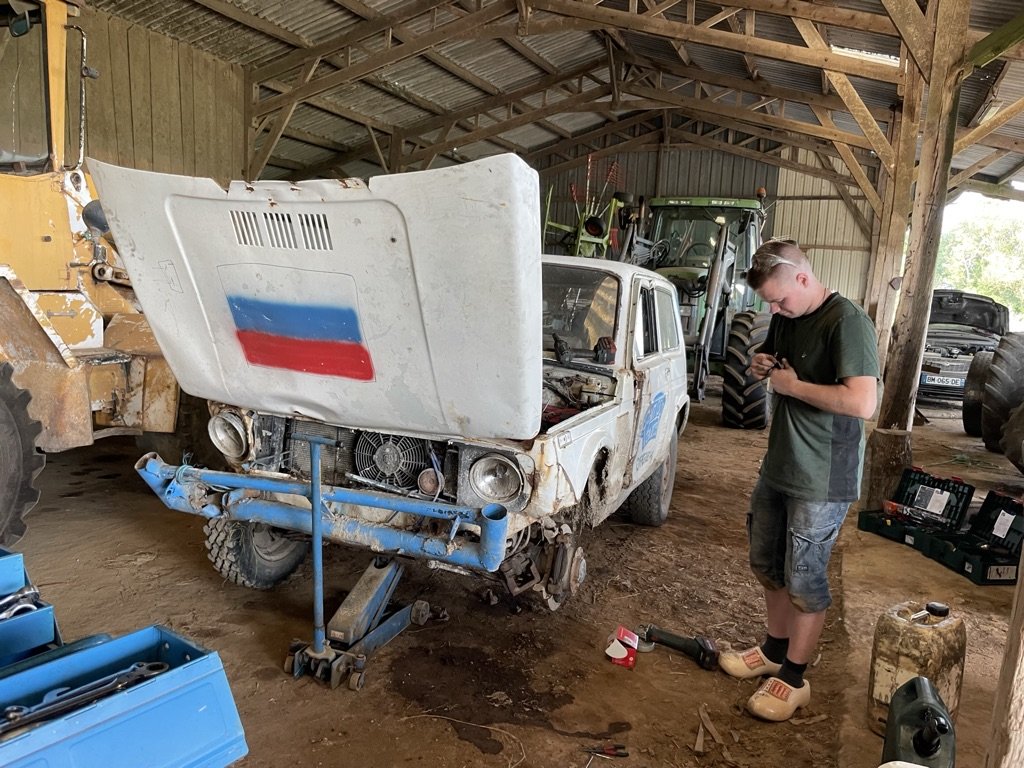 in de schuur ter grote van 2 voetbalvelden zijn de vaste gasten bezig met de voorbereidingen van de zwarte cross van Henri – een Lada niva ligt loom op zijn zij voor het gemak van de vakantie monteurs – zwarte vette handen brede grijns – klap op de gebutste motorkap – biertje ! – onder het afdak worden we welkom opgenomen in de kring vaste gasten – Andere Petra is jarig -hoera! – taart gaat rond – sterke verhalen over Henri,s zwarte cross -Biertje ! – de nacht word uitgeschonken over ons tijdelijke verblijf – feest verlichting neemt het over – wat een lekkere plek –