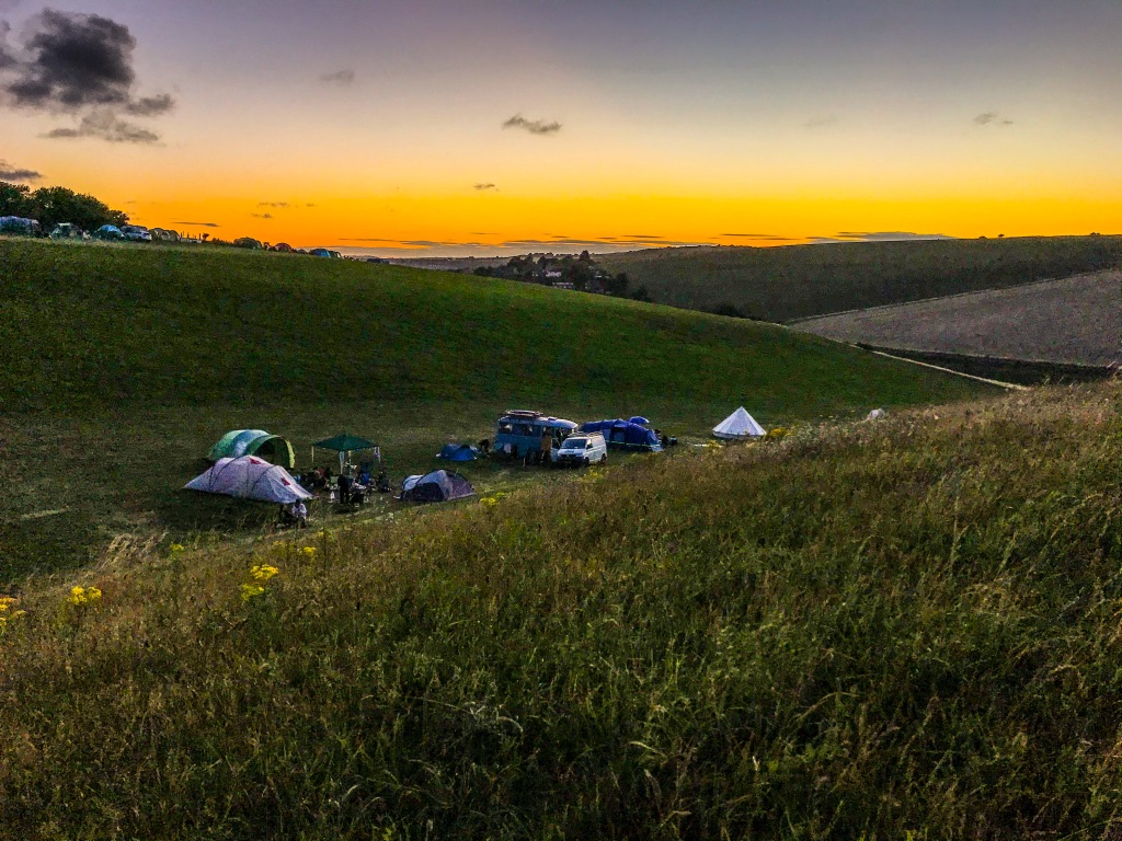 Chalky Downs Campsite ligt prachtig verscholen aan de rand van Brighton . Simpele boerencamping met een lekkere douche waar de nacht als een fluwelen deken over je heen getrokken word. Zometeen naar Brighton home of The Mods .