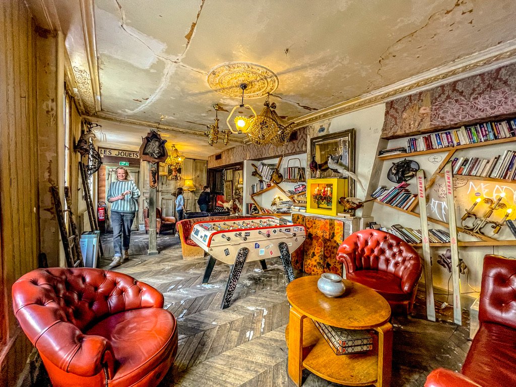 Derriere – Swingend restaurant in Paris- geen idee of het de standard bij Derriere is – maar we werden zingend ontvangen – als je van prikkels houd zit je hier top – de inrichting is een kruising tussen een hippe brocante /garage/ bordeel/ bibliotheek – op de eerste etage sluip je door de linnenkast het rook gedeelte in – Alice in wonderland style- waanzin- alles klopt aan dit restaurant – griezelig goed gedaan – zelf de wc is een lust voor het oog