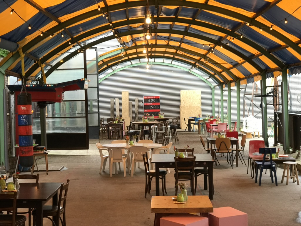 Het skatecafe indoor skatebaan /cafe en restaurant met boksbal en skatelessen tussen voor en hoofdgerecht – Noord heeft het – Hotel de Goudfazant – oude garage waar je tussen de auto’s en gereedschap op niveau kan eten en drinken maar niet logeren – Bioscoop FC Hyena – waar je naar een film kijkt onderuitgezakt in rode banken – Restaurant De VerbroederIJ – eten en drinken in een stadsmoestuin en speelplaats – en ga zo maar door –