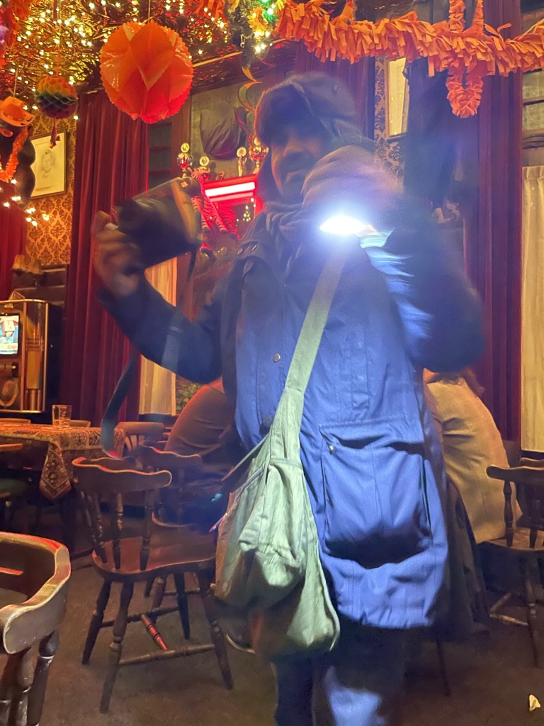 Kerstverlichting uit lang vervlogen nachten – sint maarten lampions – “oranje boven WK slingers ” – tapijtjes op de tafels en muren vol foto’s en herinneringen – Hollandse hits knallen uit de speakers en doen de ramen trillen in hun sponningen – de polaroid man , een klassieker in het nachtleven – flits voor 10 euro twee foto’s –