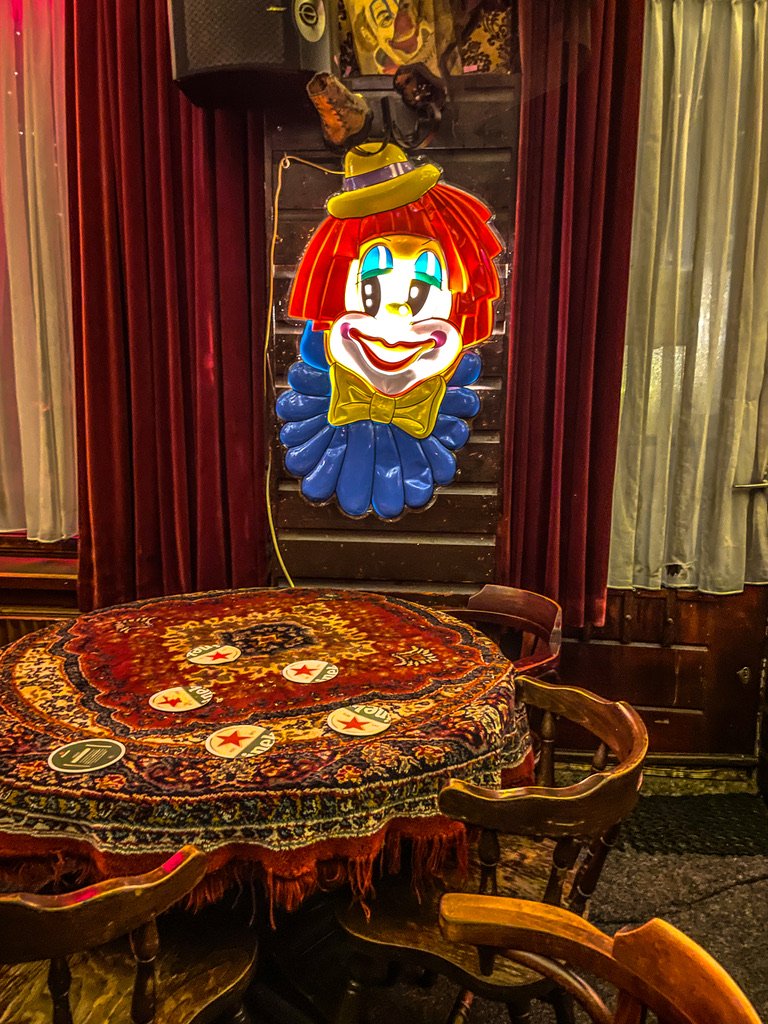 Kerstverlichting uit lang vervlogen nachten – sint maarten lampions – “oranje boven WK slingers ” – tapijtjes op de tafels en muren vol foto’s en herinneringen – Hollandse hits knallen uit de speakers en doen de ramen trillen in hun sponningen – de polaroid man , een klassieker in het nachtleven – flits voor 10 euro twee foto’s –