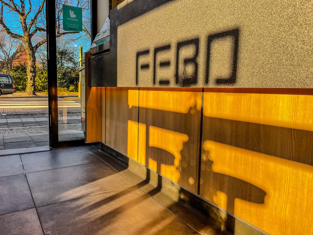 Einde route en einde dag – er moet nog wat in die buik van je – onvast fietsend op je Nederlandse fiets doen we het laatste stukkie Typisch Hollands – Fastfood uit de muur – Snackbar Febo heeft magnifieke saté kroketten ( saté wat net op je patatje oorlog zat ) je gooit wat geld in de stalen muur en trekt het luikje open met je ultieme snack behoefte erachter – Adres : Oudezijds Voorburgwal 33, 1012 EJ Amsterdam