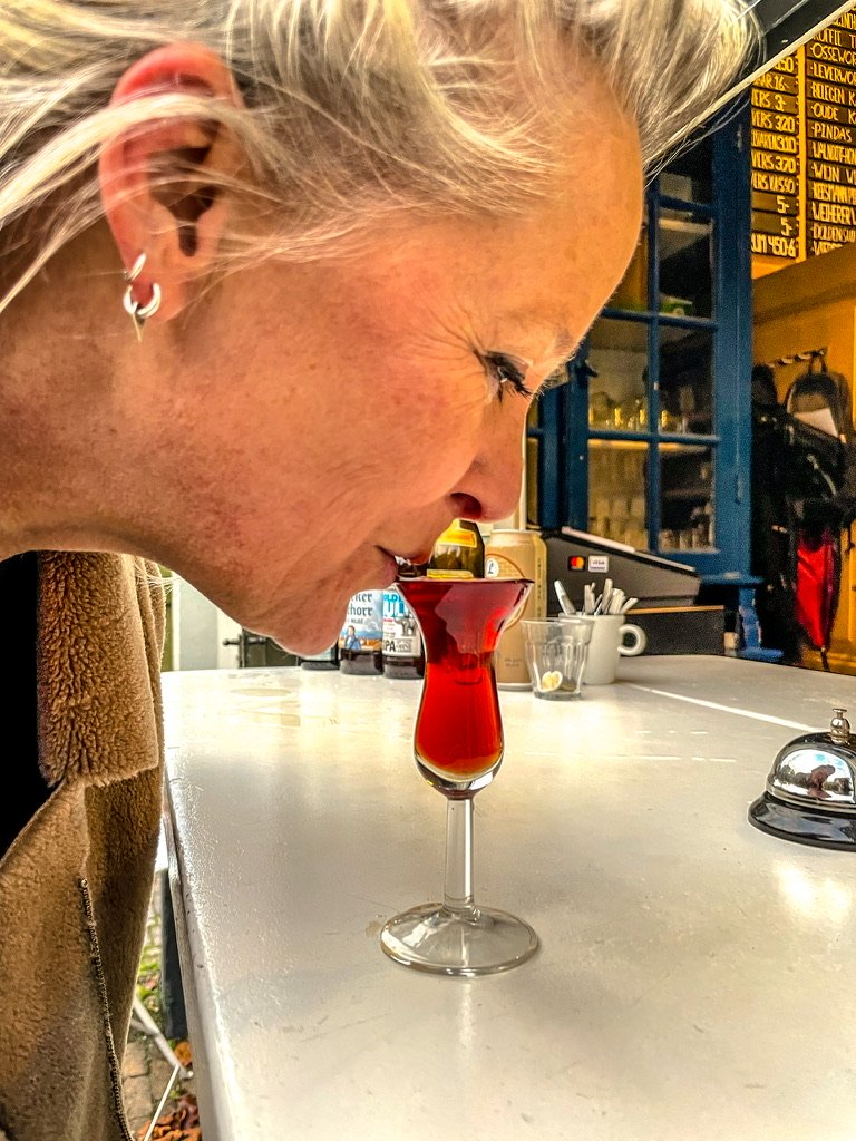 Don’t drink too much because the tour now goes to tasting room and distillery T’Nieuw Diep – here they distill beautiful Dutch liqueurs and Jenever – to satisfy the rising hunger you eat Amsterdam Osseworst and old cheese with a lick of mustard -also very Dutch is to drink Jenever by eating Haring – because most fishshops do not have a license to sell spirits you can order that now – it’s just a small alcoholic suggestion – Adres : Flevopark 13a, 1095 KE Amsterdam