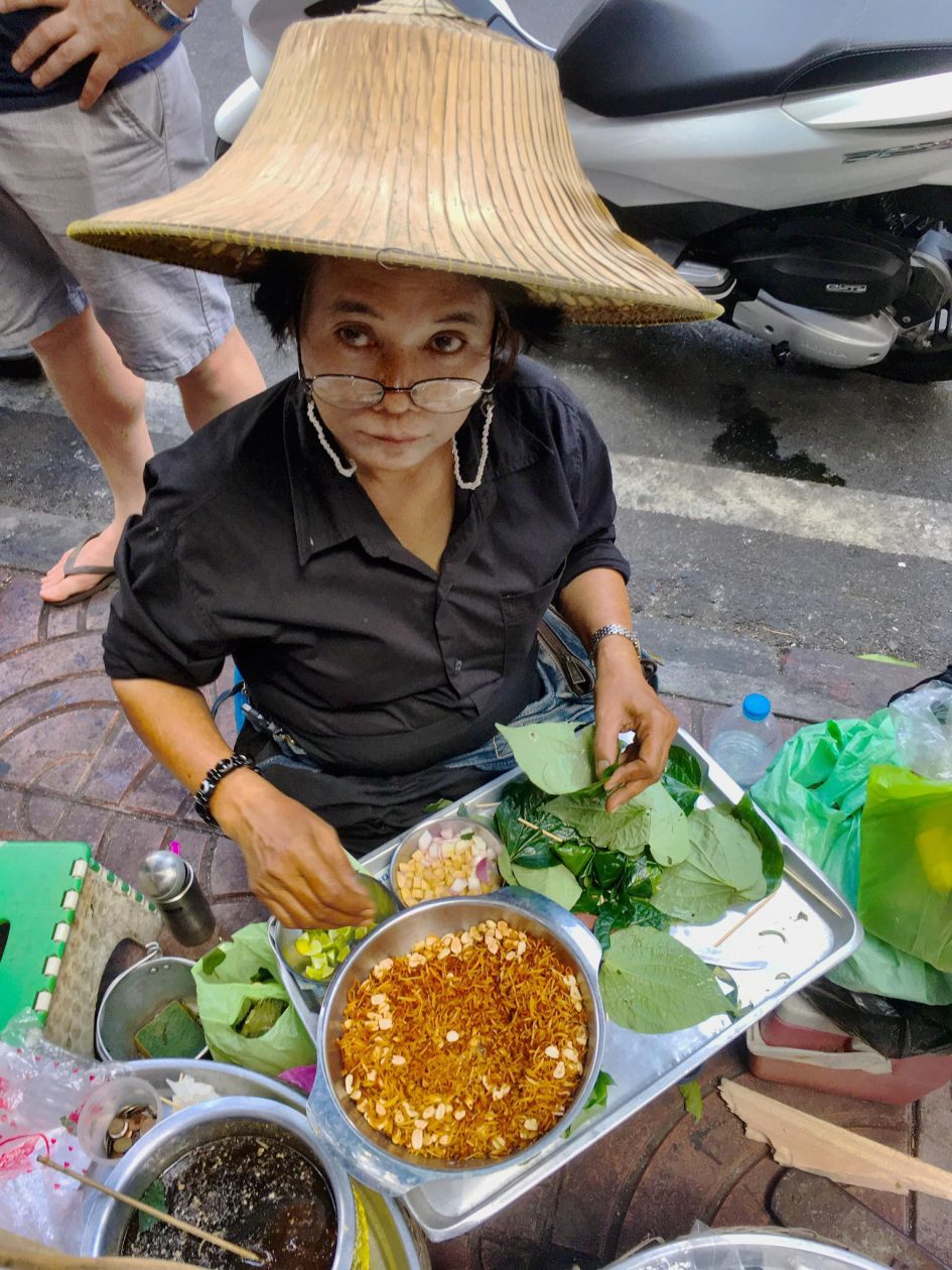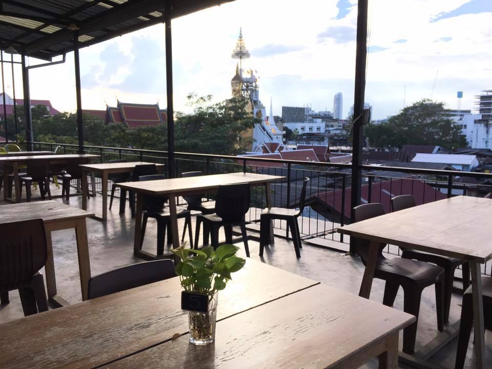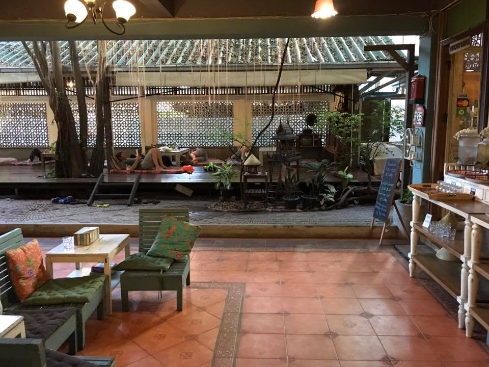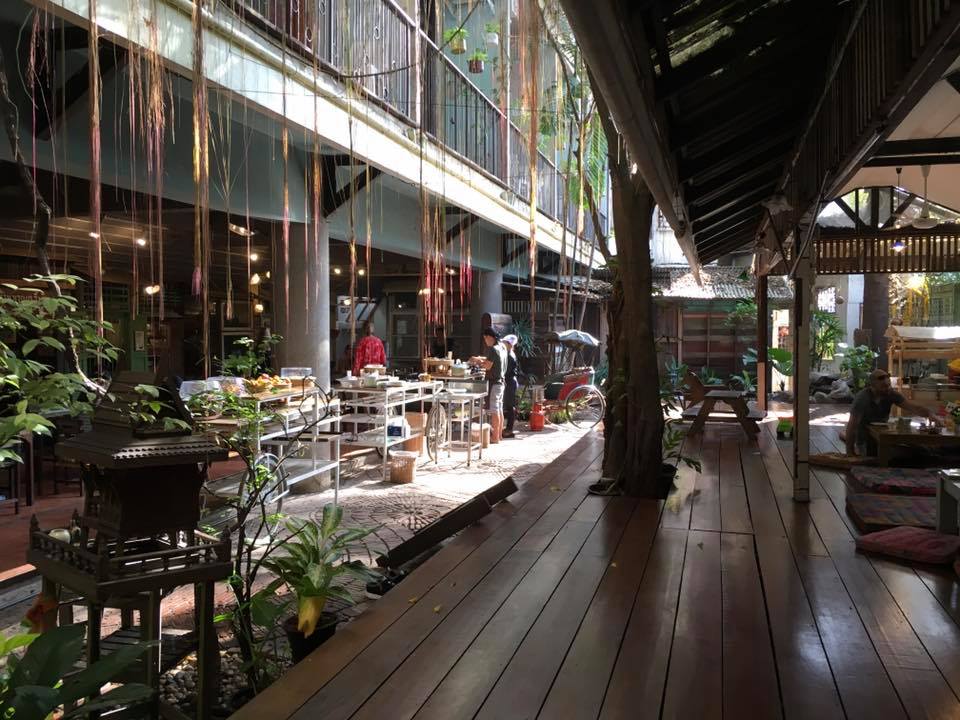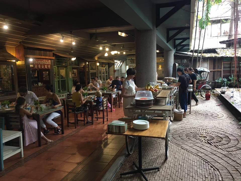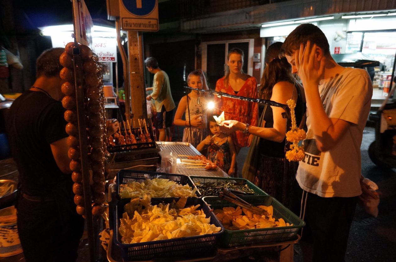 Als Bangkok je even bij de strot heeft dan ga je lekker op het dakterras chillen of beneden in de patio op een matras relaxen . Wat ook erg tof is ,is dat je buiten het hotel meteen struikelt over de winkeltjes en restaurants . Iedereen verkoopt hier eten . Op karretjes , onder een parasol , in een nis . Fruit in een zakje . Kip op een stok. De soep ” tom yam Goong” bij het restaurant op de hoek is zo lekker dat je de keuken in rent om de kok te smeken voor het recept.