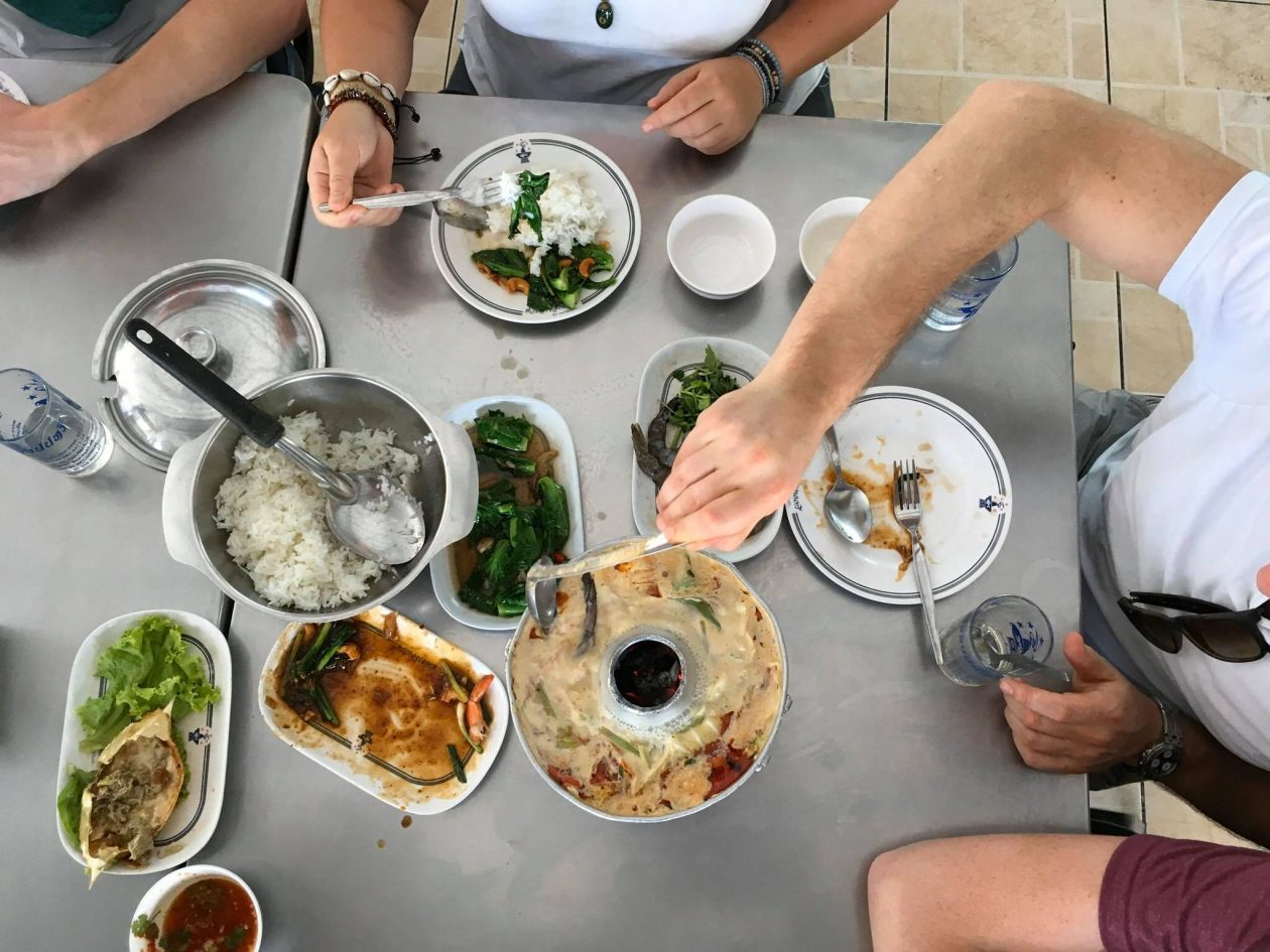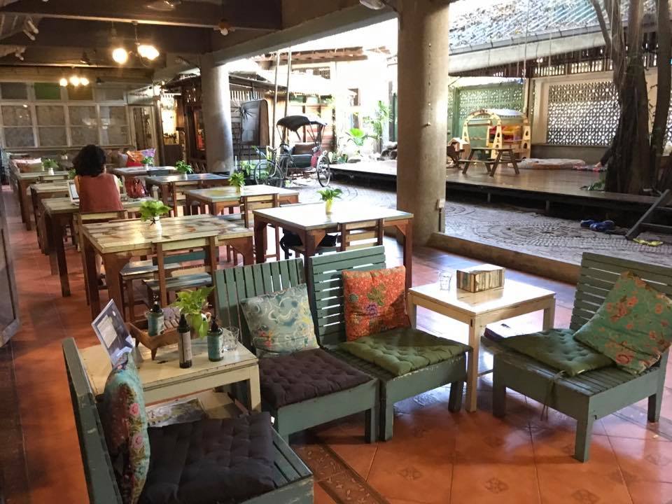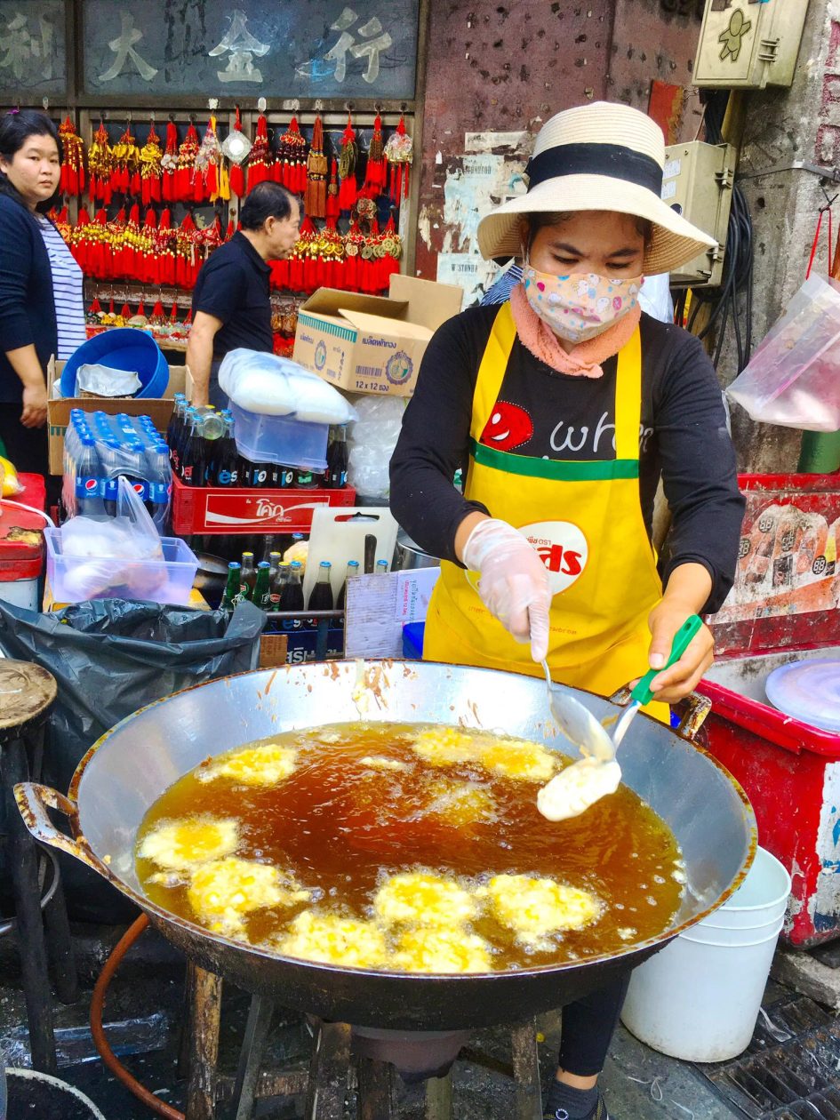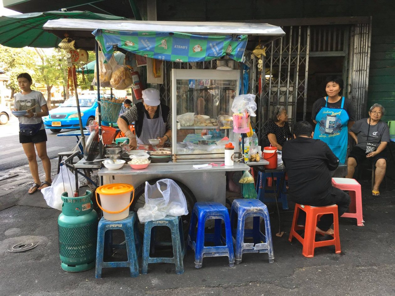 Als Bangkok je even bij de strot heeft dan ga je lekker op het dakterras chillen of beneden in de patio op een matras relaxen . Wat ook erg tof is ,is dat je buiten het hotel meteen struikelt over de winkeltjes en restaurants . Iedereen verkoopt hier eten . Op karretjes , onder een parasol , in een nis . Fruit in een zakje . Kip op een stok. De soep ” tom yam Goong” bij het restaurant op de hoek is zo lekker dat je de keuken in rent om de kok te smeken voor het recept.
