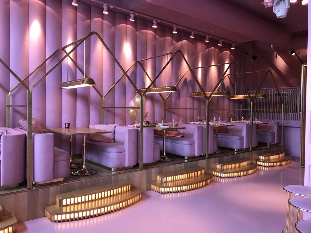 We werden aller aardigste ontvangen door een in zoet roze geklede host die ons vriendelijk naar ons roze/lila gouden kooi bracht .Foto ! . Ook het eten ziet er heerlijk sappige en TikTok approved uit . Foto ! In een roze wolk aten we . Foto ! En hoe was het eten of heb je alleen foto’s gemaakt ? Het eten was uitstekend en goed te fotograferen 🙂