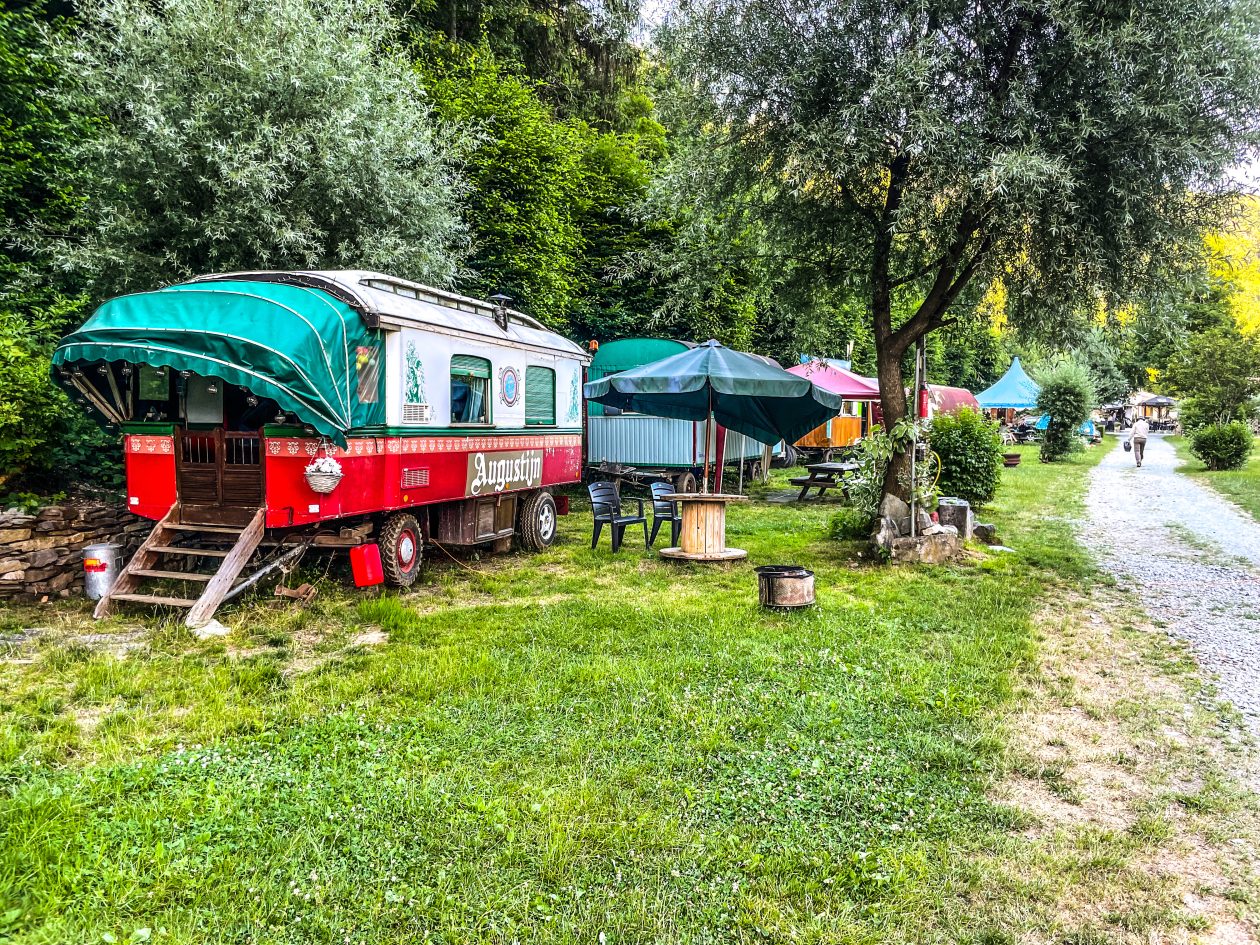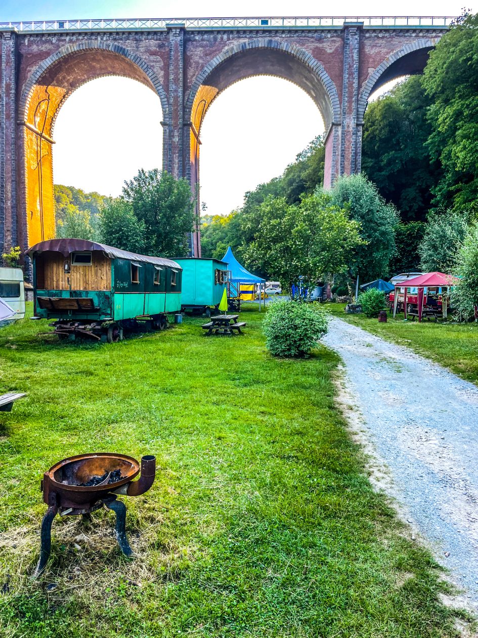 Je kan hier prachtige vintage woonwagens huren in de schaduw van de spoorbrug of fijn logeren in je eigen camper of tent .